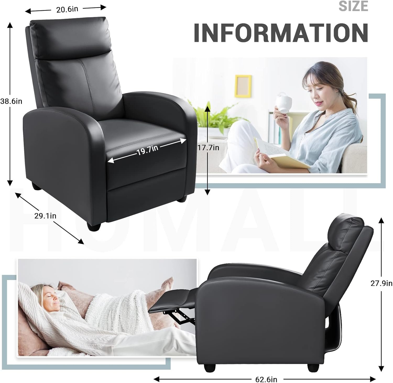 Homall Modern Recliner Chair Padded Seat Pu Leather for Living Room Single Sofa Recliner Seat Club Chair Home Theater Seating (Black)