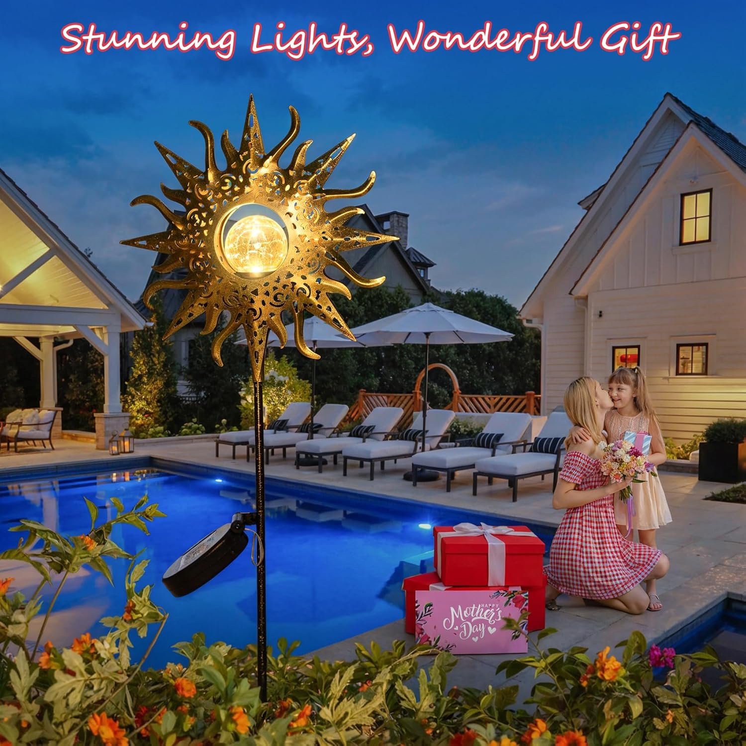 12 reviews for HOMEIMPRO Large Sun Solar Garden Decor Lights Outdoor Garden Gifts Mom Dad, Crackle Glass Metal Stake Backyard Decor, Waterproof LED Lights for Lawn Patio Ornaments, Mothers Day Gifts for Women