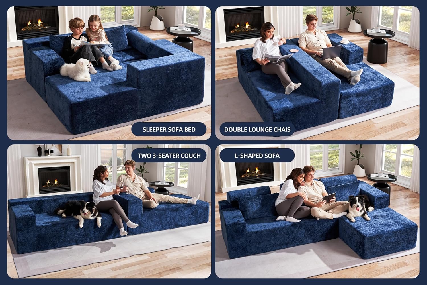 9 reviews for Homguava Modular Sectional Couches for Living Room,105″ Cloud Couch with L-Shape Chaise,Comfy Sofa Living Room Couch with Deep Seat,No Assembly L Couch,Luxury Distressed Velvet(Blue,R)