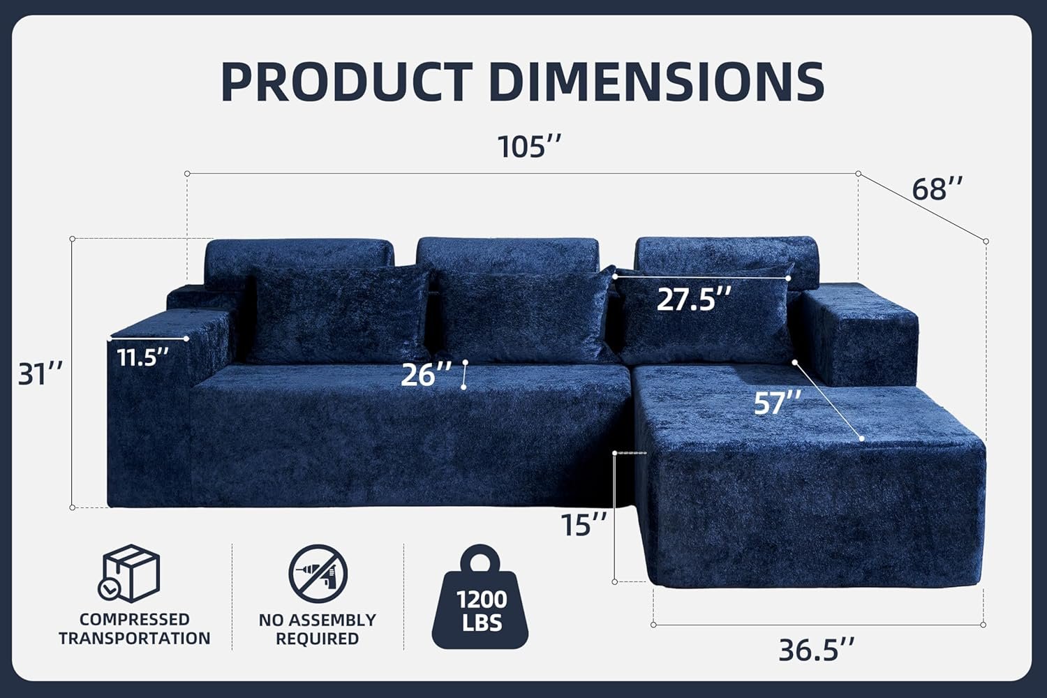 Tags: Assembly, ChaiseComfy, Cloud, Couch, Couches, CouchLuxury, Deep, Distressed, Homguava, Living, LShape, Modular, Room, Room105, SeatNo, Sectional, Sofa, VelvetBlueR