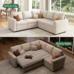 8 reviews for HONBAY Modular Sectional Sleeper Sofa with Pull Out Bed, Rearrangeable L Shaped Couch with Storage Seat, Sectional Couches for Living Room,Beige