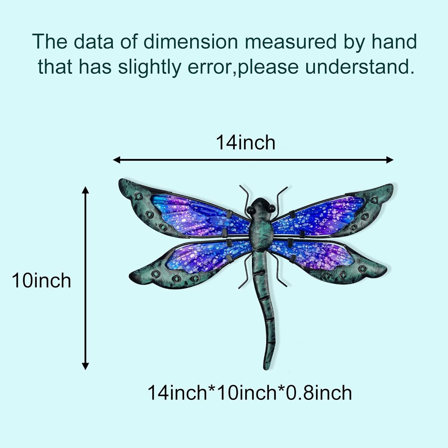 HONGLAND Metal Dragonfly Decor, Dragonfly Outdoor Wall Decor, Metal Wall Art, Wall Sculptures Gifts Hanging Decorations for Garden Yard Home-Blue 14 Inch