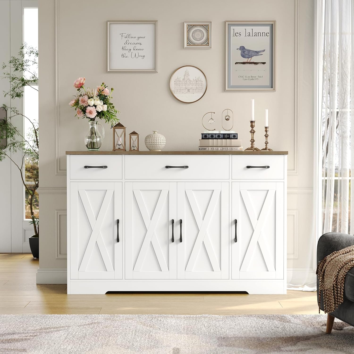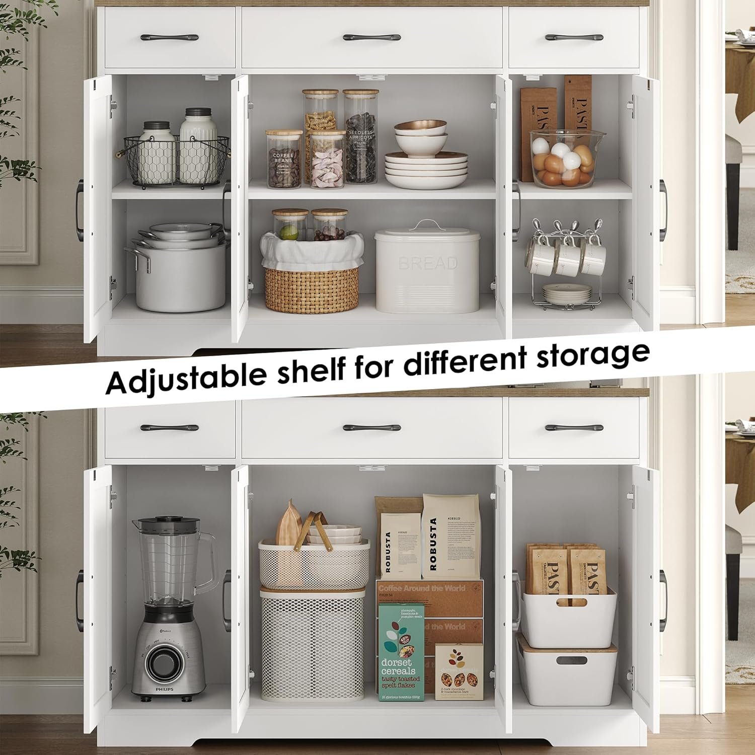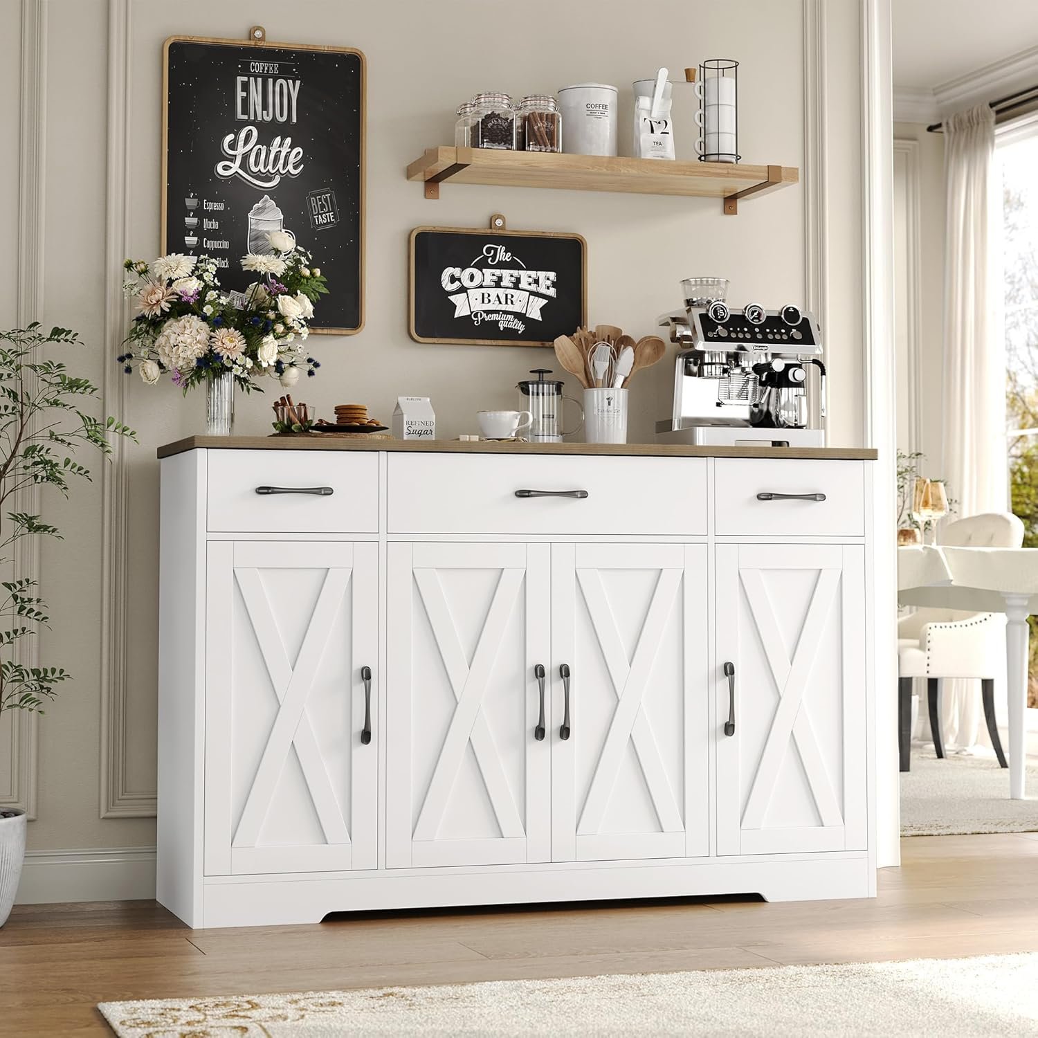 10 reviews for HOSTACK Buffet Cabinet with Drawers, 55″ Large Sideboard Buffet Storage Cabinet with Shelves and Doors, Modern Farmhouse Coffee Bar Station Wood Kitchen Table for Kitchen, Dining Room, White/Rustic