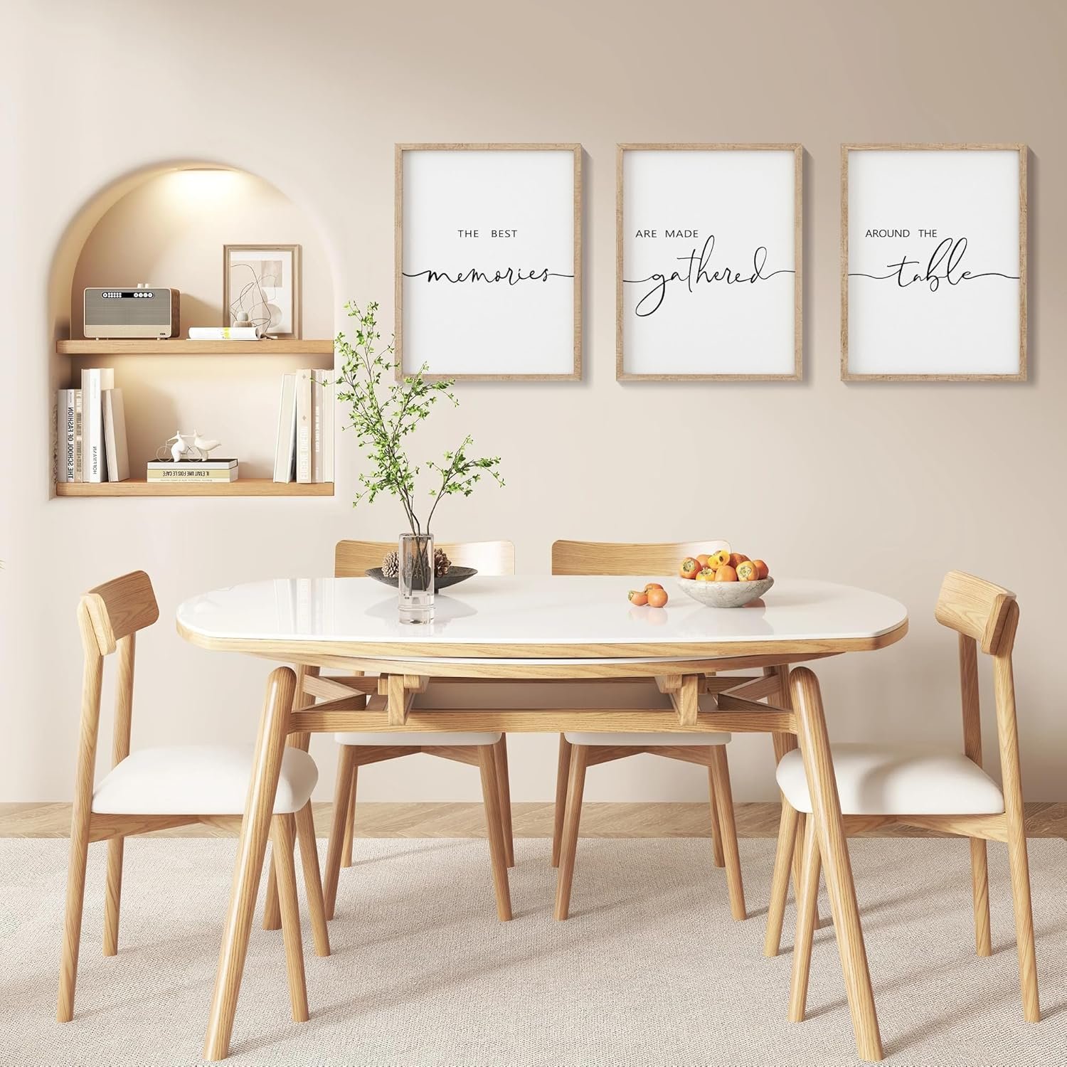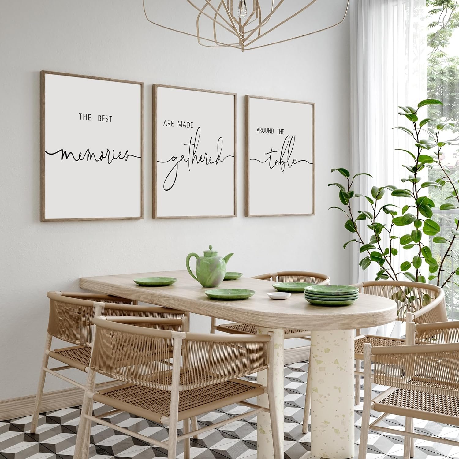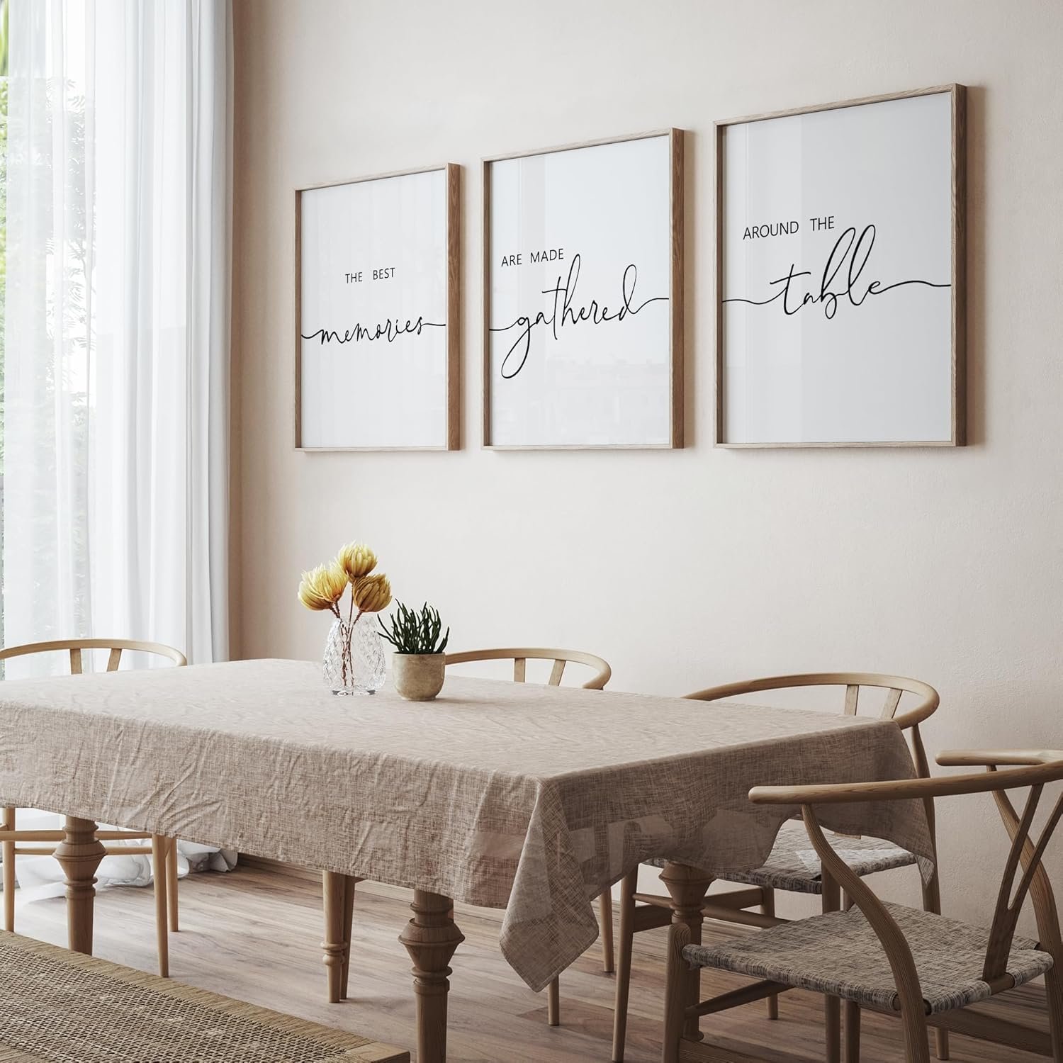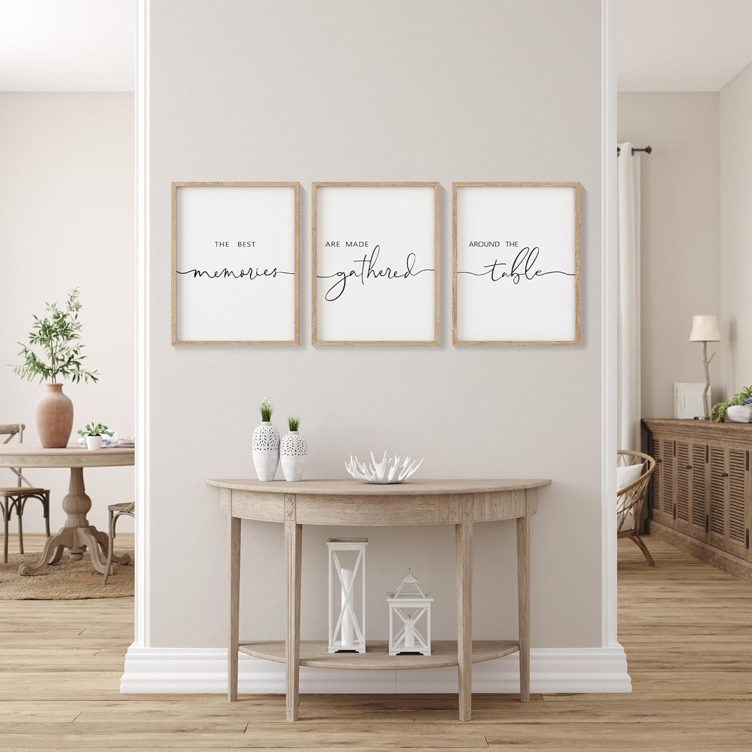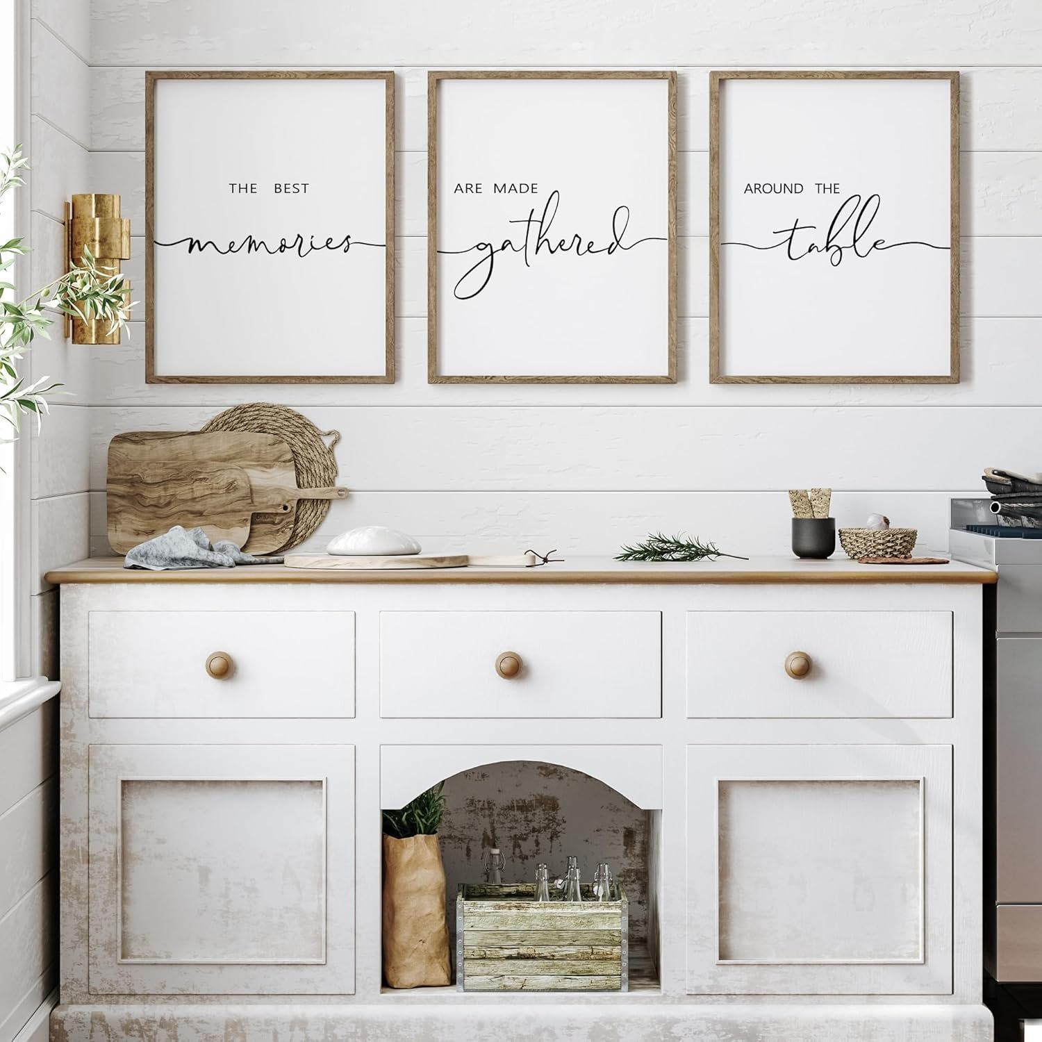 I recently purchased this black and white three-piece wall décor and I couldn’t be happier with it. The simple design fits perfectly with my farmhouse kitchen, adding a touch of elegance and warmth to the space.The quality of the prints is great, and they arrived well-packaged and in excellent condition. They make a lovely statement piece and serve as a charming reminder of the importance of family gatherings. Overall, this décor is a wonderful addition to my kitchen and I’m very pleased with it..