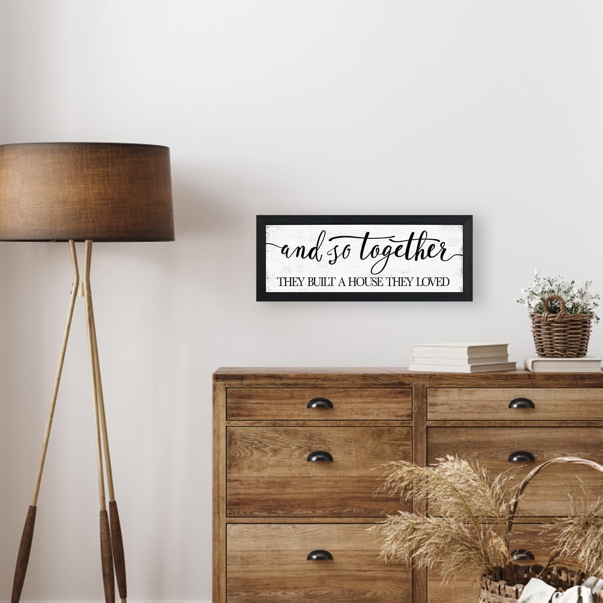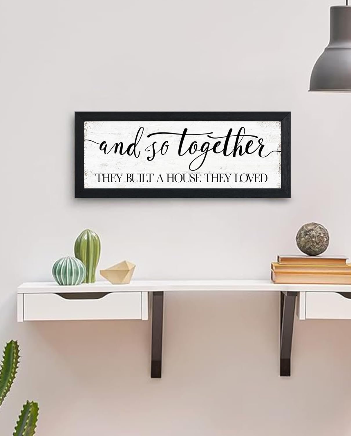 House Warming For New Home Decor Sign: And So Together They Built A House They Loved, Modern Farmhouse Wall Decor, Rustic Home Decor Wall Art Family Love Signs, Bedroom Decor For Couples Sweet Decorations