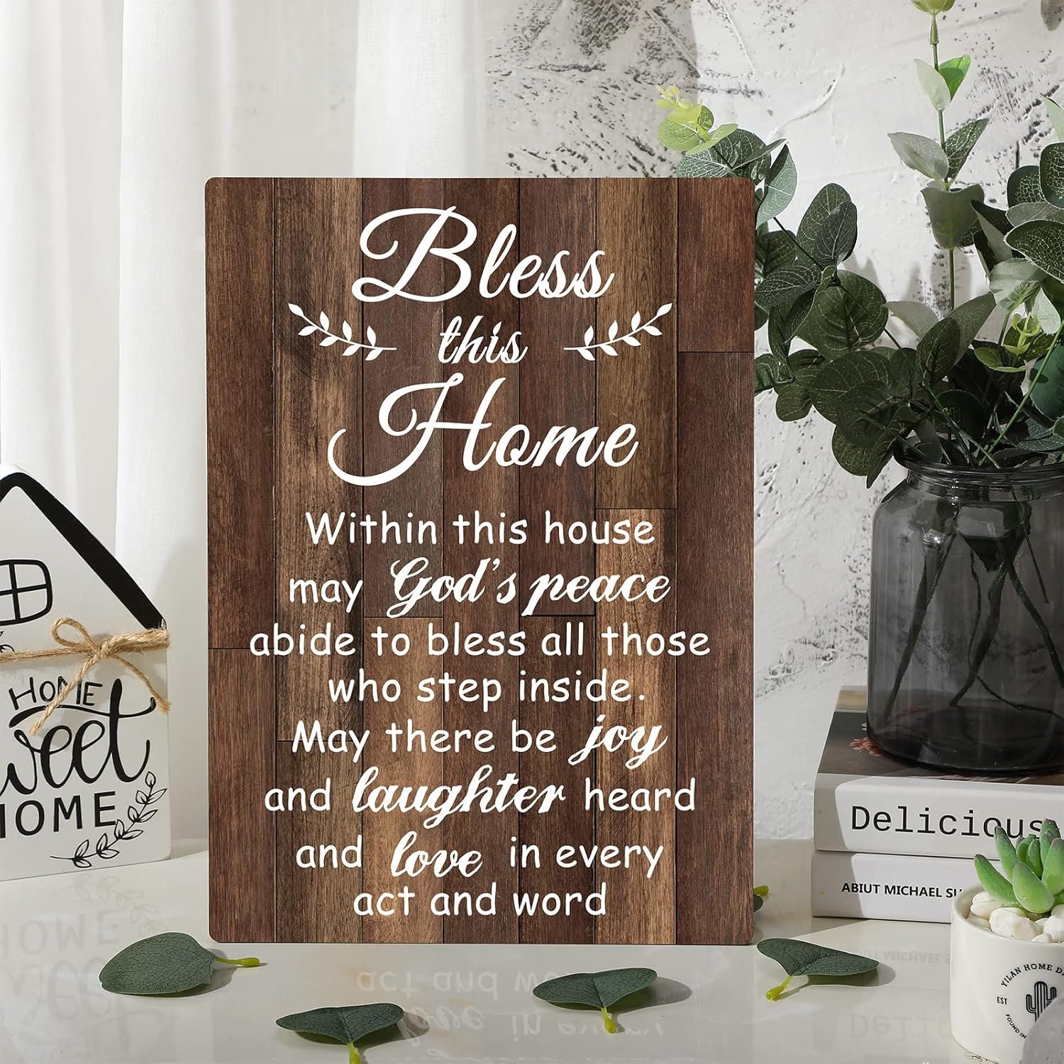 10 reviews for House Warming Gifts New Home Bless This Home Wall Decor House Blessing Plaque Farmhouse Entryway Sign Wood Rustic Sign for Living Room Bedroom Homeowner Gift Decor(13.8 x 11 Inches,Brown)