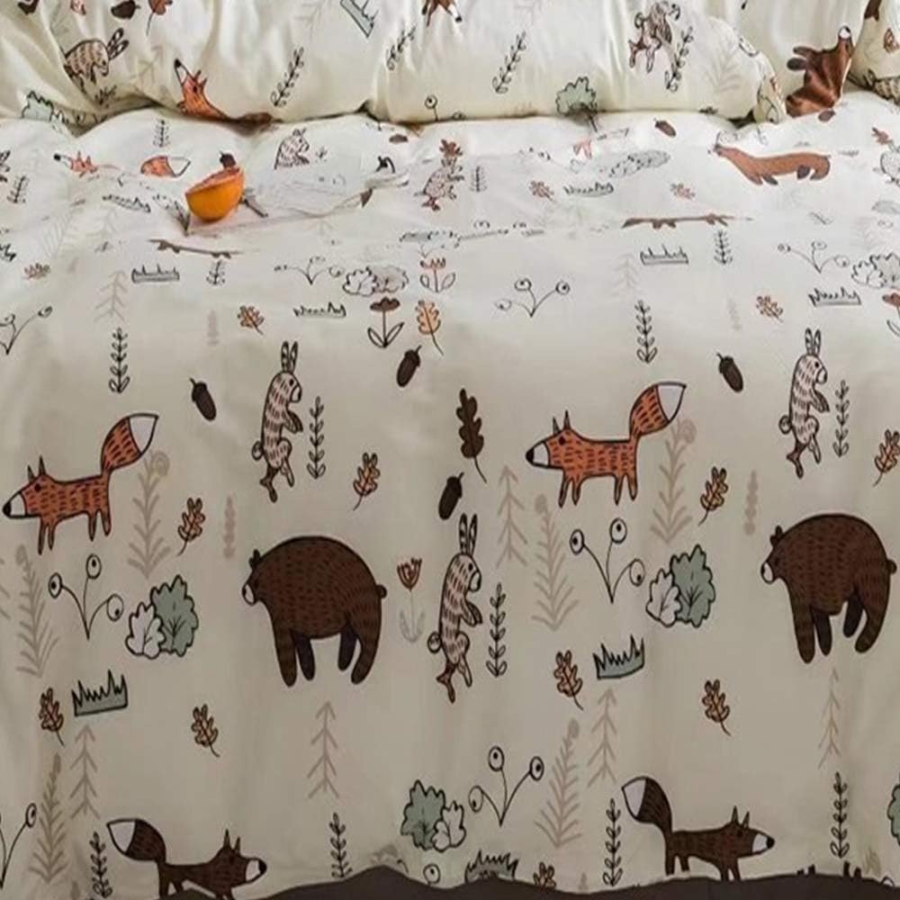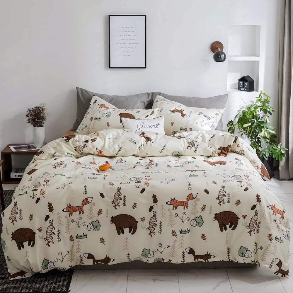 13 reviews for Houseri Beige Bear Comforter Set Queen Teen Girls Woodland Kawaii Fox Rabbit Cartoon Bedding Sets Full Size Boys Animal Patterned Comforter Comfy Soft Forest Theme Dorm Bed Quilt Blanket Full 3 PCS