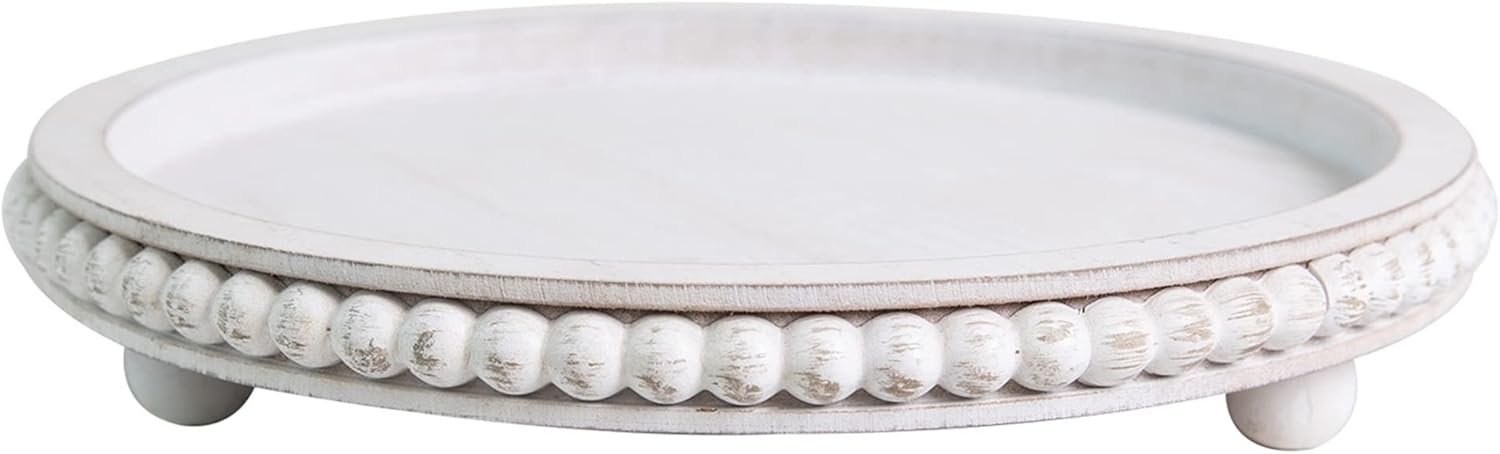 HPC Decor 12in Round Wood Tray – White, Distressed, Farmhouse Rustic – Decorative Tray for Living Room, Coffee Table, Kitchen Table or Farmhouse Serving Tray