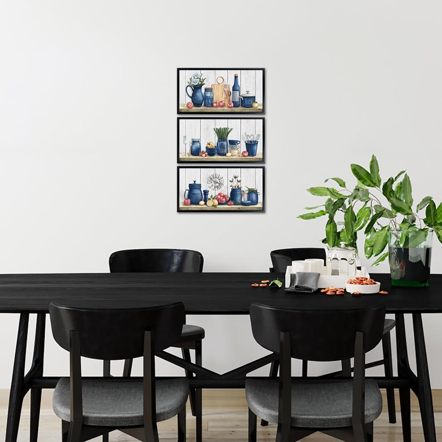 2 reviews for iKNOW FOTO 3-Piece Country Kitchen Canvas Wall Art, Rustic Farmhouse Food Still Life Prints with Black Frame, Vintage Dining Room Wall Decor, Ready to Hang, Each 8×16” (Blue)