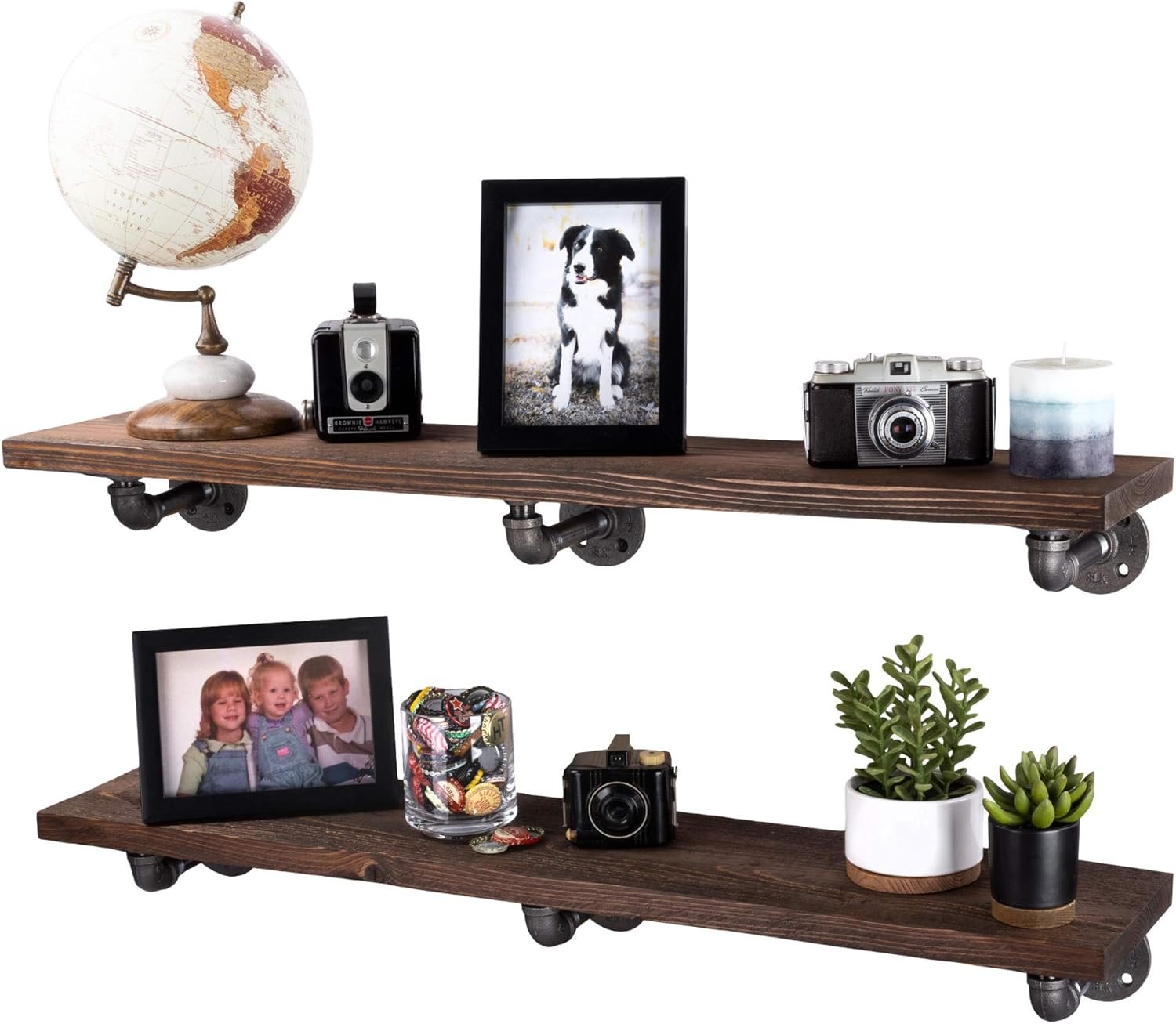 8 reviews for Industrial Pipe Wooden Shelves Restore by Pipe DÉCOR Premium Douglas Fir Wood Shelving 36 Inch Length Set of 2 Boards and 6 L Brackets Trail Brown Finish