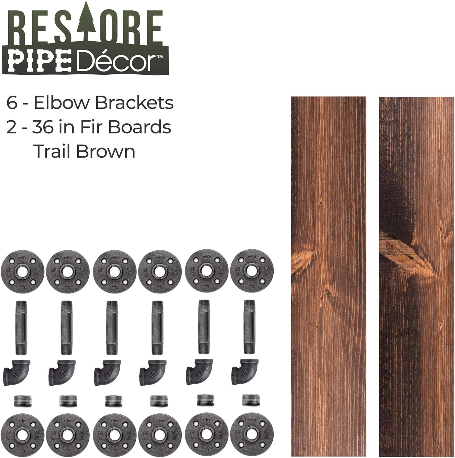 Industrial Pipe Wooden Shelves Restore by Pipe DÉCOR Premium Douglas Fir Wood Shelving 36 Inch Length Set of 2 Boards and 6 L Brackets Trail Brown Finish