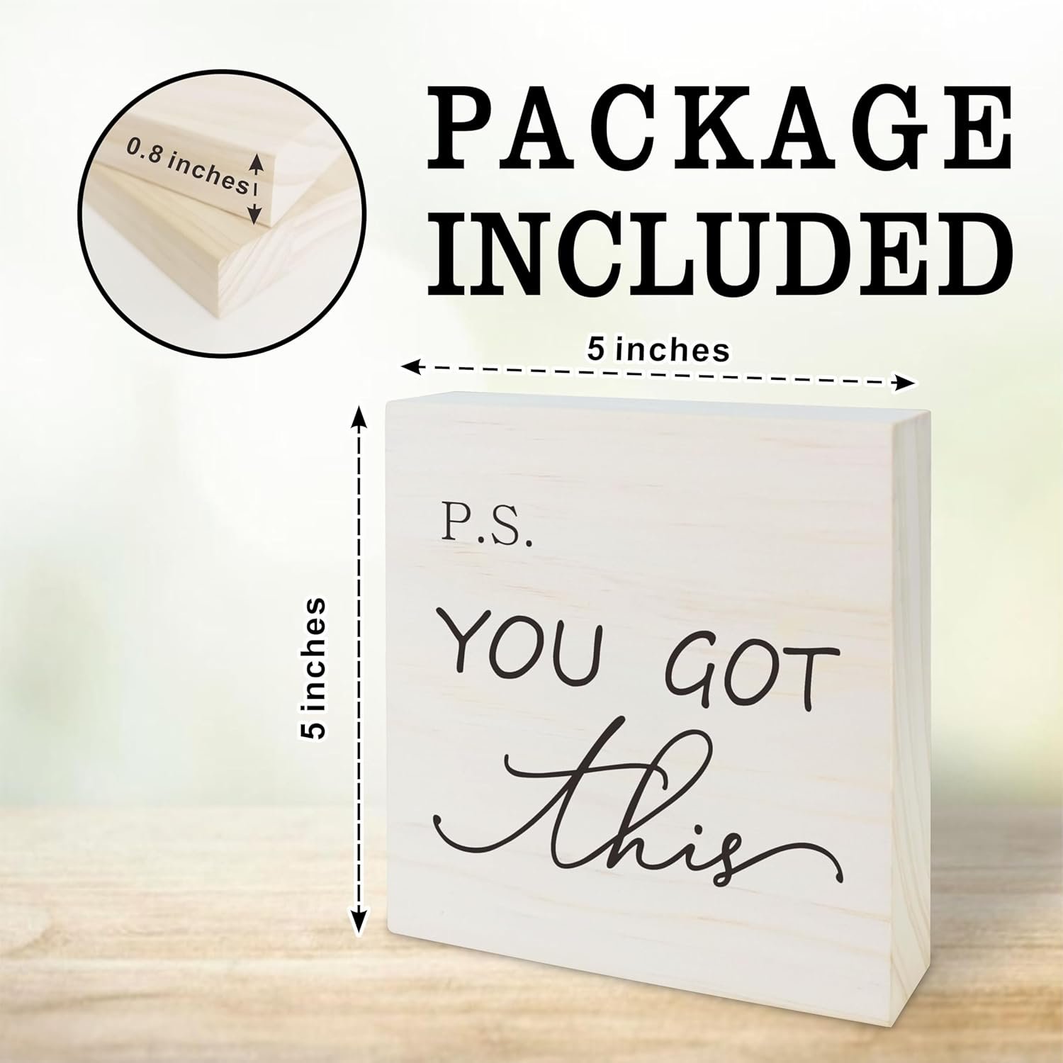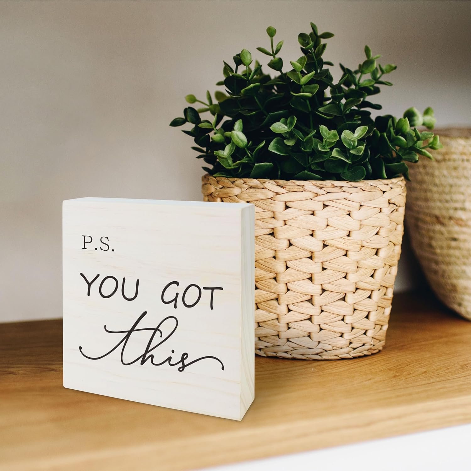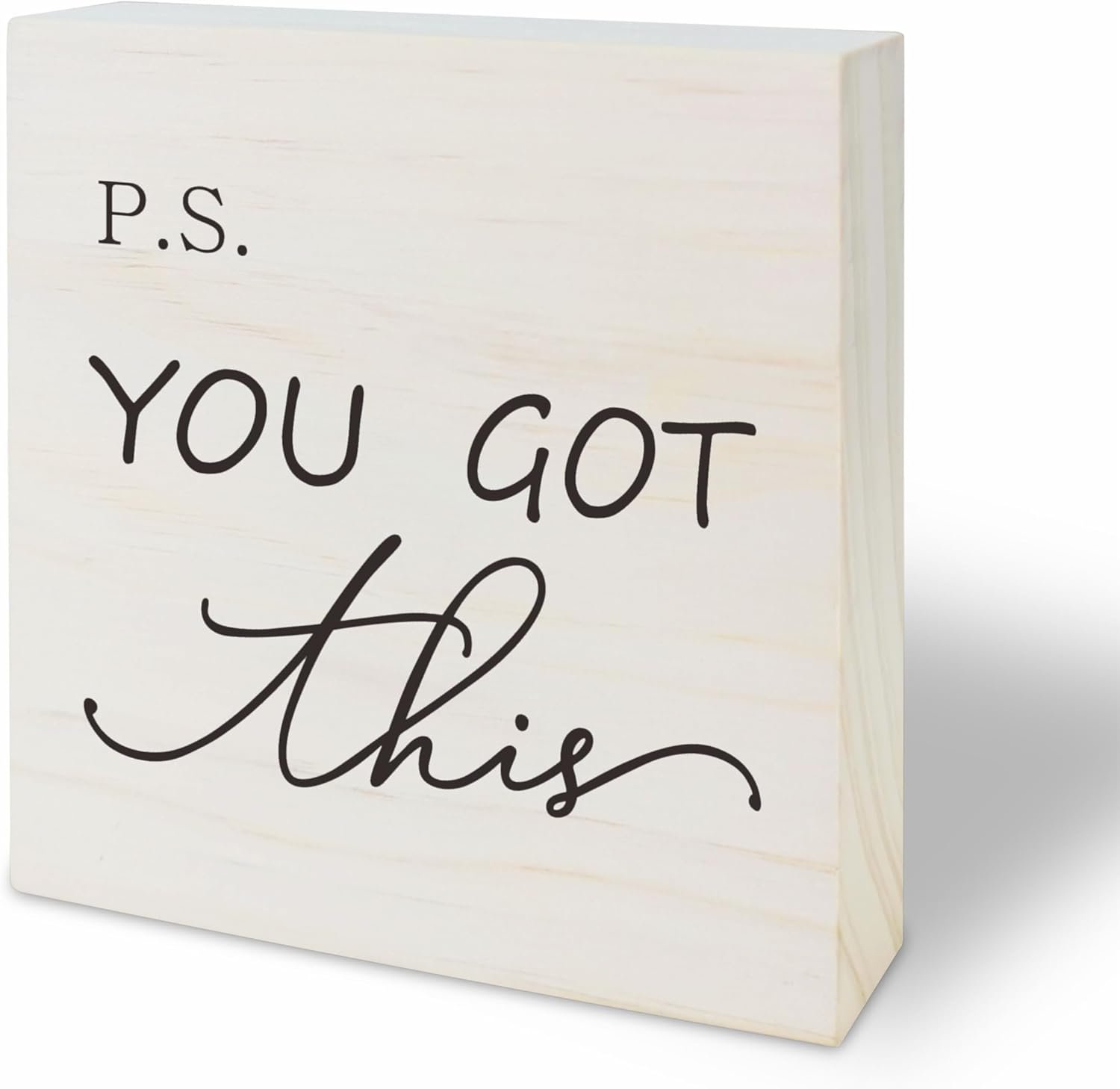 Inspirational Saying Wooden Block – P.S.You Got This – Modern Minimalism Farmhouse Tabletop Decor For Home,Office,Kitchen – 5 x 5 Inch Positive Wooden Sign – B15
