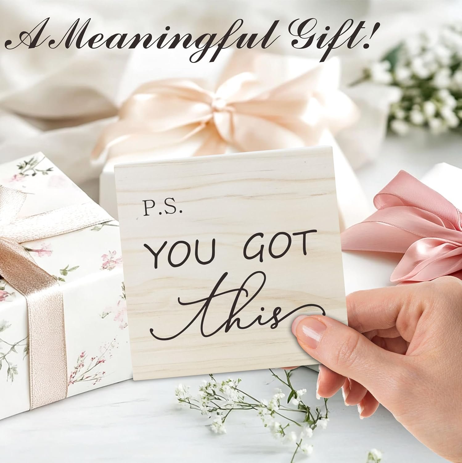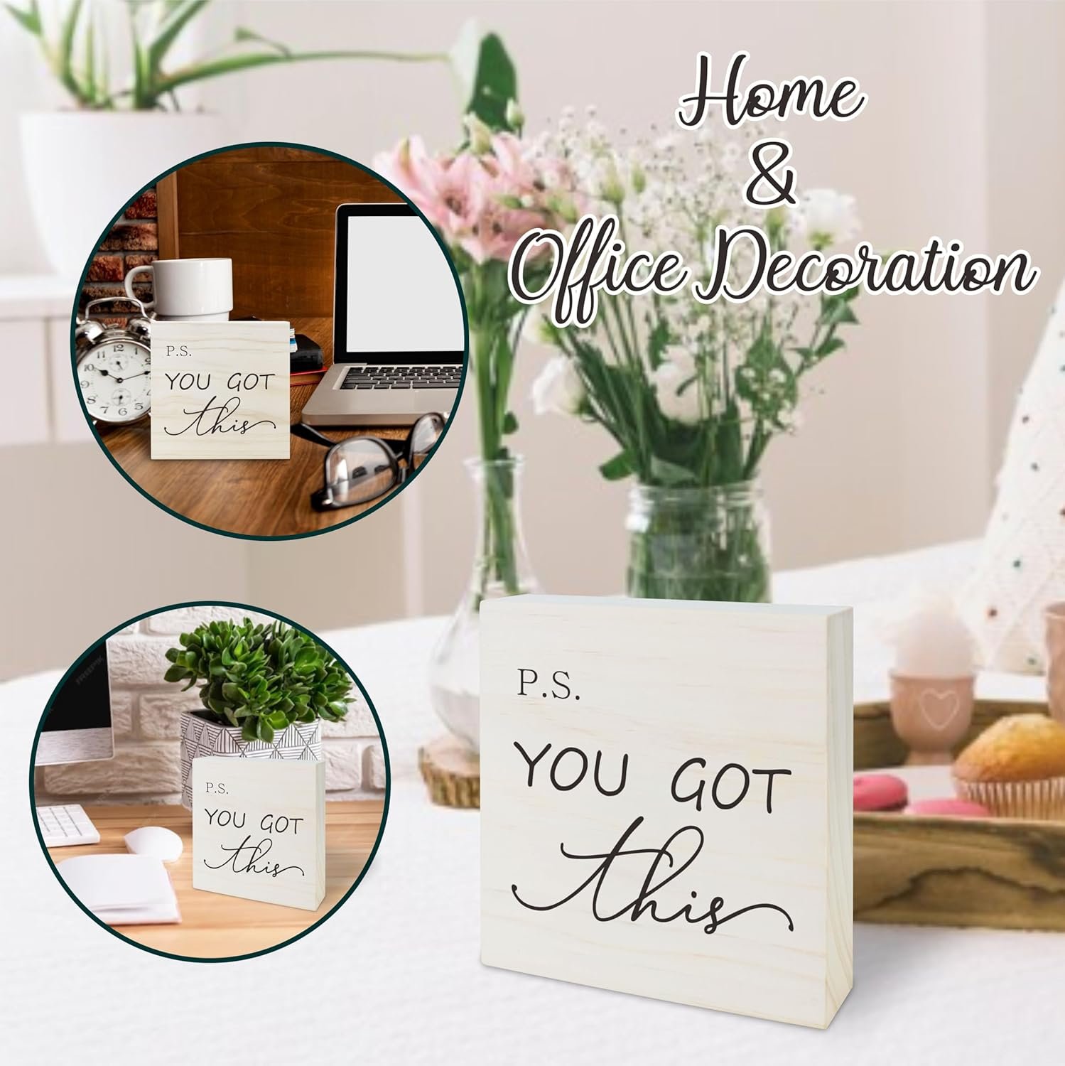 5 reviews for Inspirational Saying Wooden Block – P.S.You Got This – Modern Minimalism Farmhouse Tabletop Decor For Home,Office,Kitchen – 5 x 5 Inch Positive Wooden Sign – B15