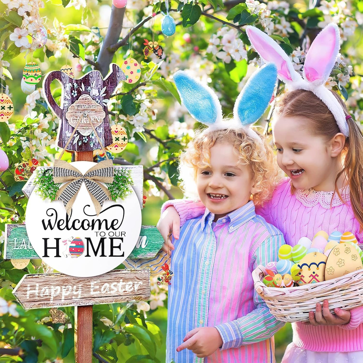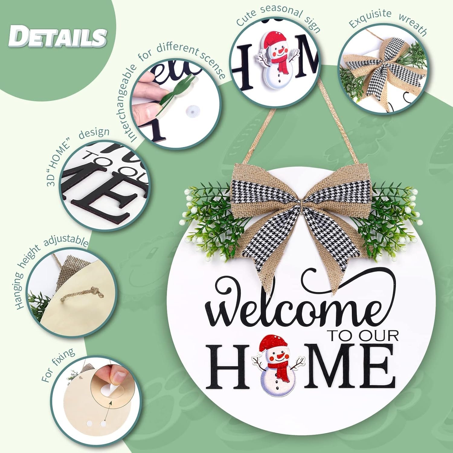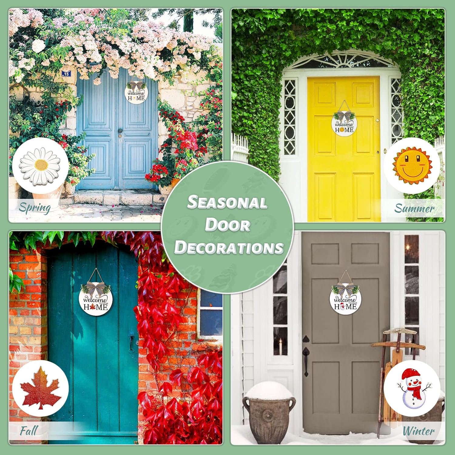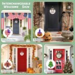 Interchangeable Welcome Sign for Front Door – Solid Wooden Welcome Wreaths with 16 Seasonal Holiday Icons Front Door Decor for Farmhouse Hanging, Valentine’s, Easter Christmas Housewarming Gift Decor