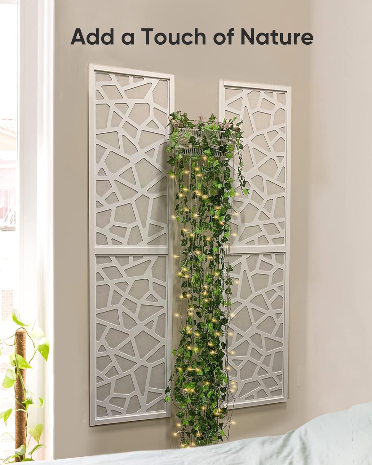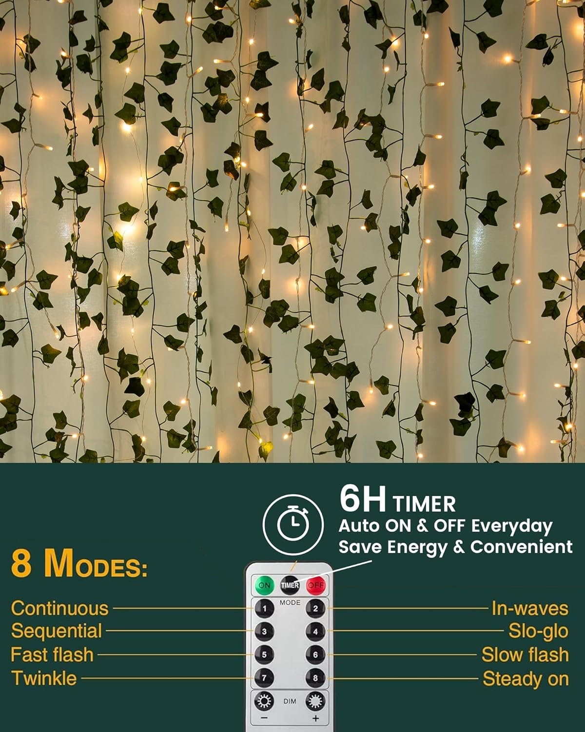 This artificial ivy garland is a great way to add aesthetic greenery and warm lighting to any space! The 84 feet of ivy provides plenty of coverage, and the 80 LED string lights create a soft, cozy glow that’s perfect for bedrooms, parties, or garden decor.The ivy leaves look realistic, though like most faux plants, they have a slight plastic feel up close. The CE-certified lights are a nice touch, providing a safe and energy-efficient way to brighten up a room. Installation is easy, but I recommend securing them with small hooks or adhesive clips for a clean setup.If you’re looking for versatile, decorative ivy with fairy lights, this set is a fantastic choice for transforming any space!