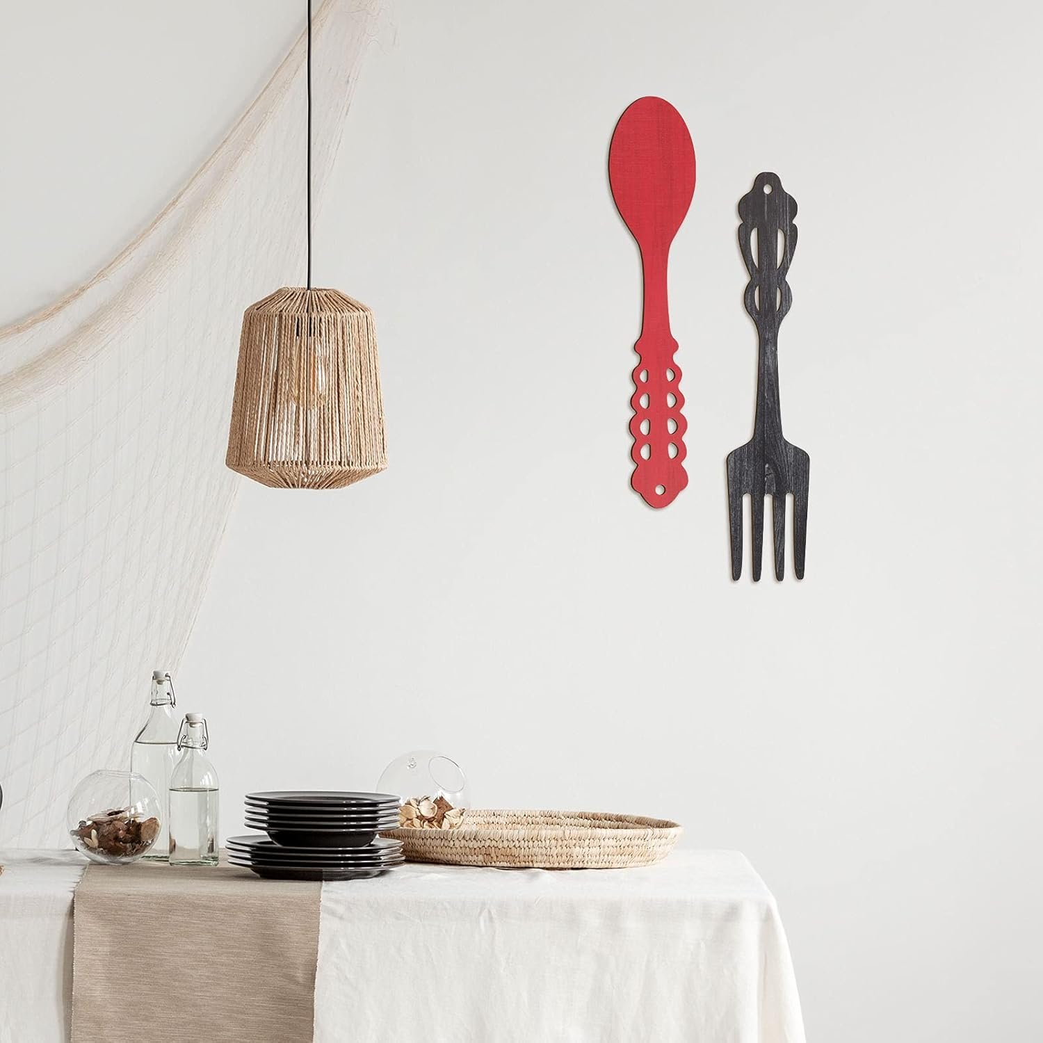 I love this Fork and Spoon wall decoration! It looks so cute in my kitchen and the Black and red colors fit my color scheme perfectly. They are not a heavy wood, but I didn’t need anything heavy,just wanted something for the empty space above my stove,saw this and it was perfect.