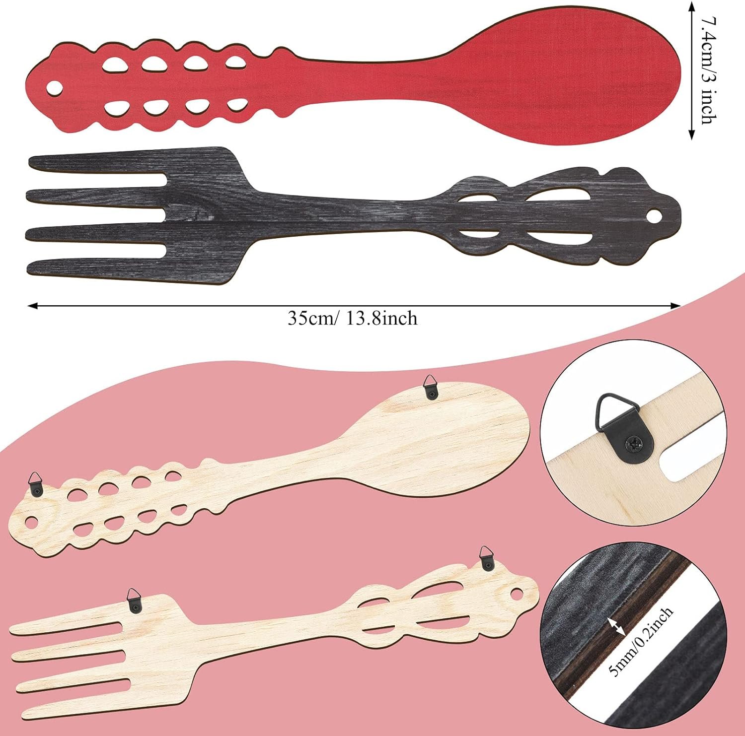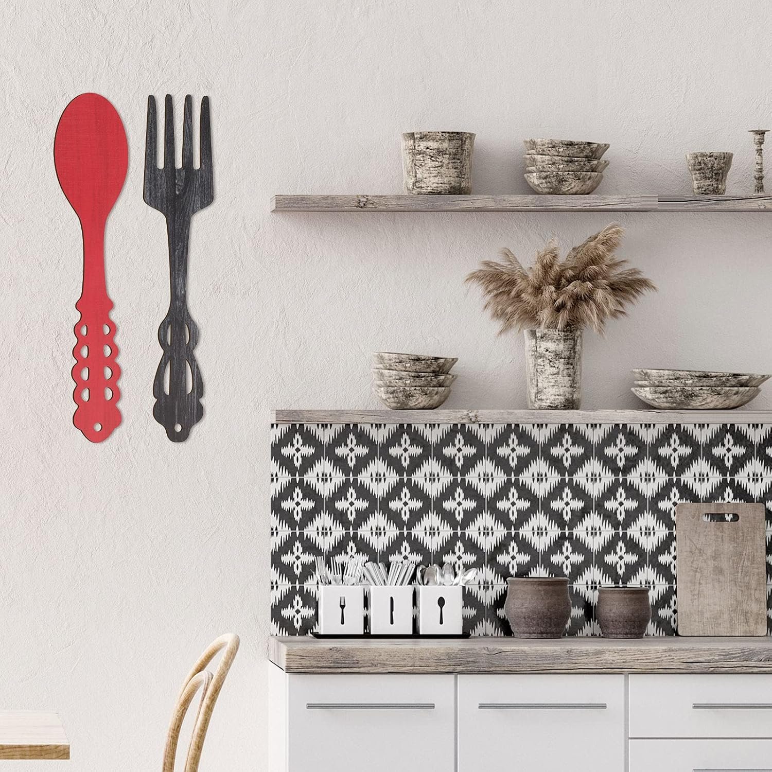 9 reviews for Jetec 2 Pieces Large Fork and Spoon Wall Decor Wooden Spoon Shaped Wall Sign Fork Shaped Hanging Sign Farmhouse Kitchen Wall Decors for Home Kitchen Dining Living Room Decor (Red, Heather Gray)