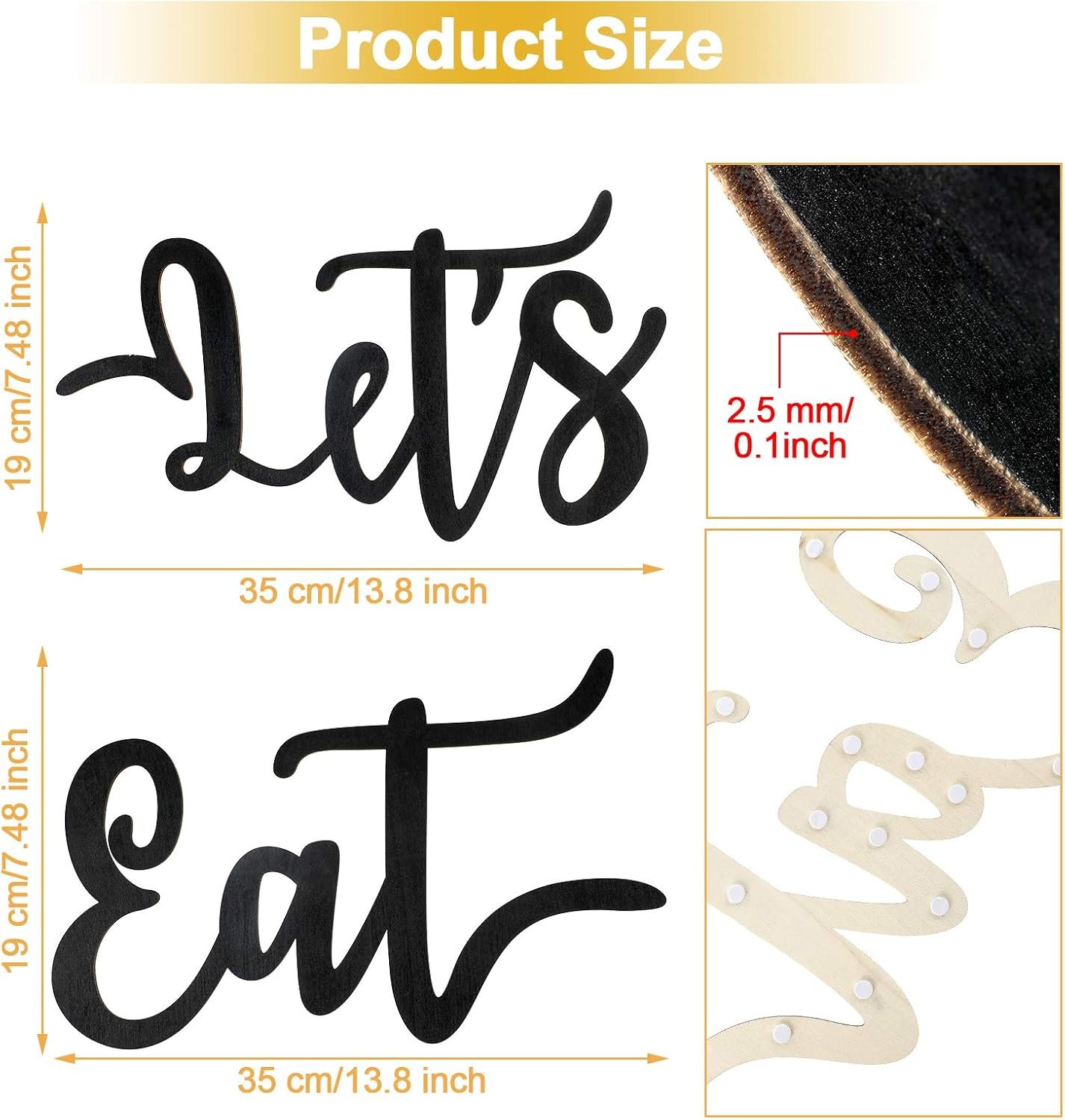 Jetec 2 Pieces Let’s Eat Sign Wooden Kitchen Wall Decor Rustic Cutout Eat Signs Hanging Wall Plaque Farmhouse Sign for Kitchen Dining Living Room Home Restaurant Decoration(Black)