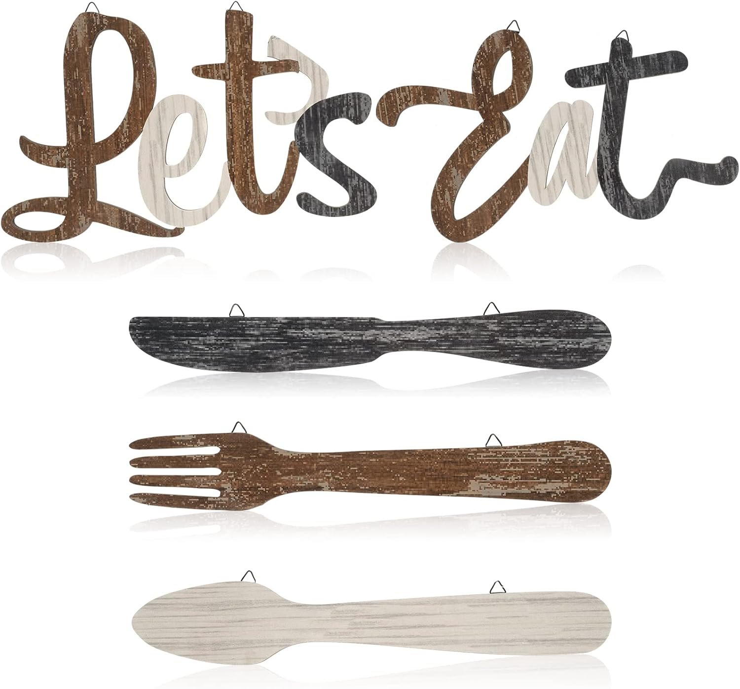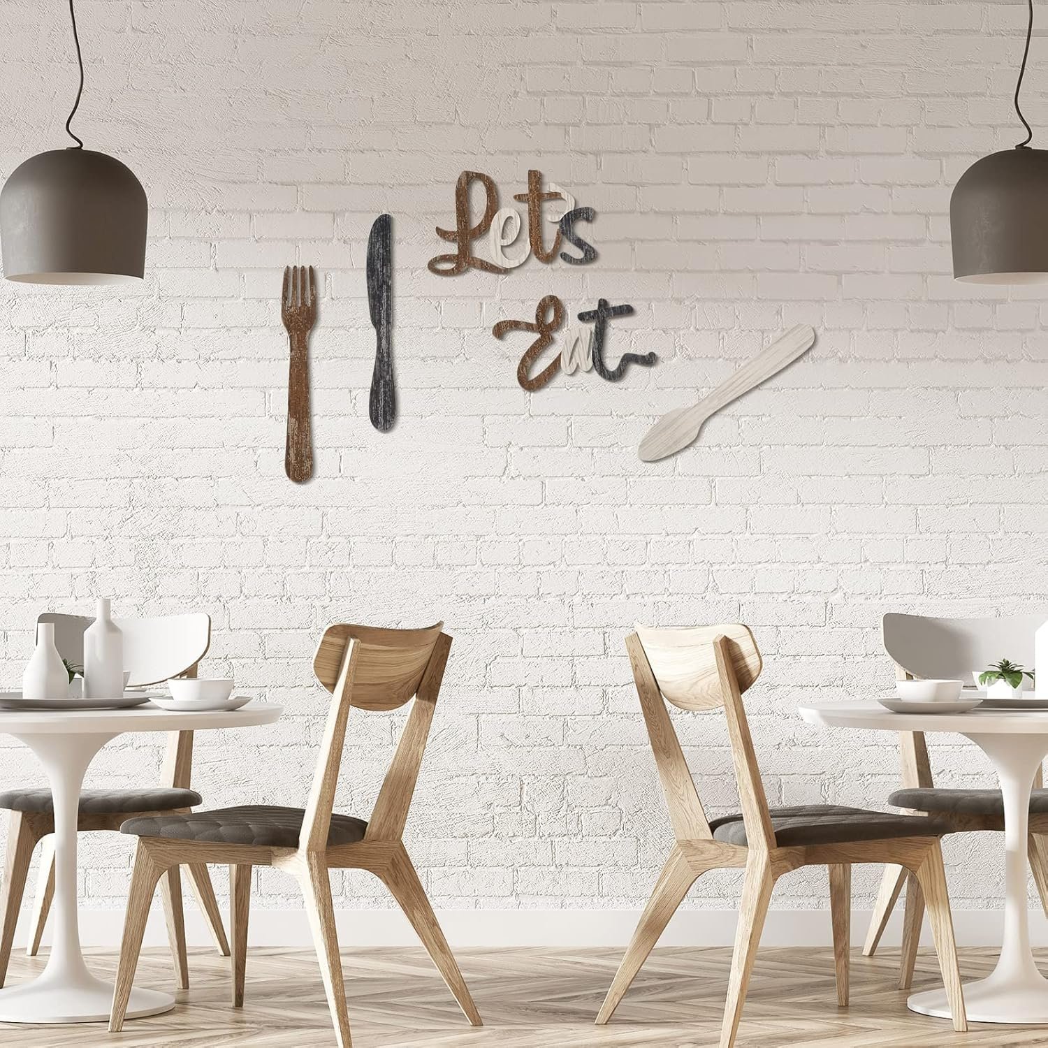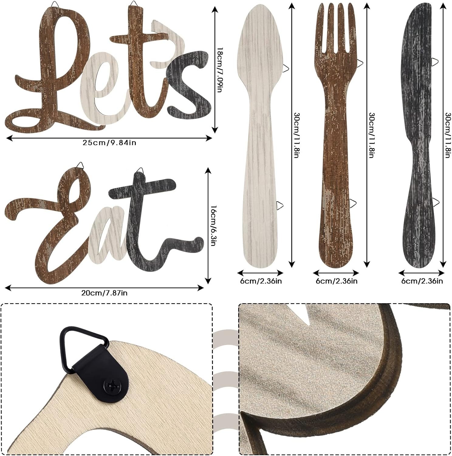 11 reviews for Jetec 5 Pcs Let’s Eat Sign Kitchen Wall Decor Fork Spoon Knife Kitchen Decor Sign Rustic Farmhouse Wooden wall decorations for Home Dining Room Bar Cafe Restaurant(Brown, Beige, Dark Gray)