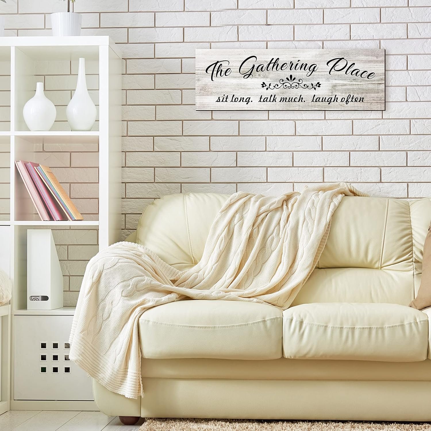 8 reviews for Jetec The Gathering Place Wooden Sign Rustic Farmhouse Home Decor Kitchen Wall Wooden Family Sign Wall Art Decor for Dining Room Home(White)