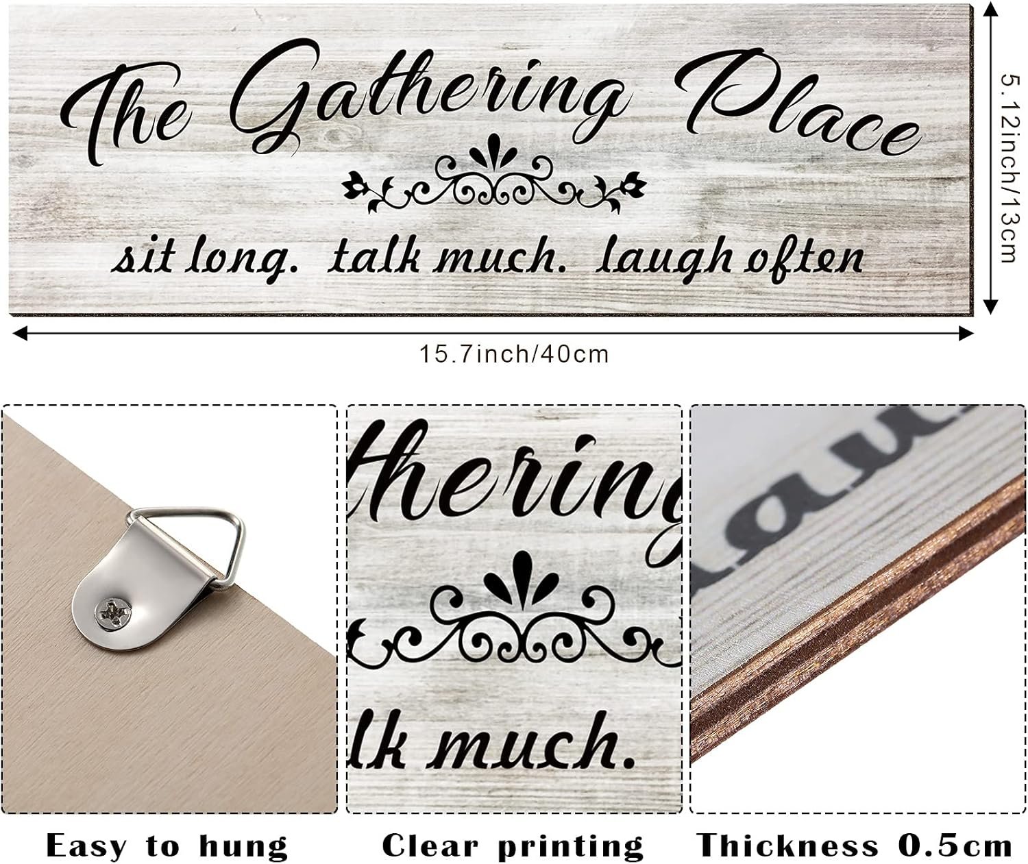 Jetec The Gathering Place Wooden Sign Rustic Farmhouse Home Decor Kitchen Wall Wooden Family Sign Wall Art Decor for Dining Room Home(White)