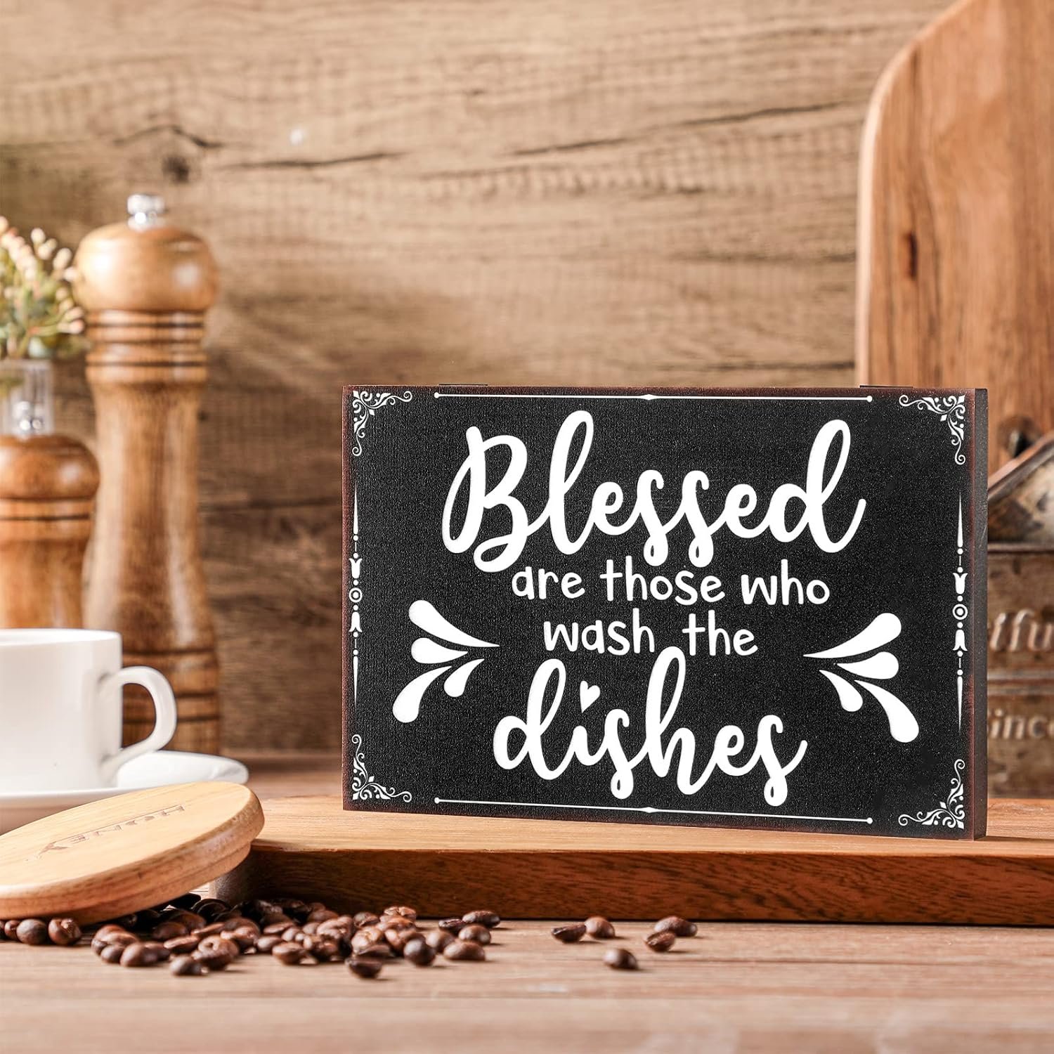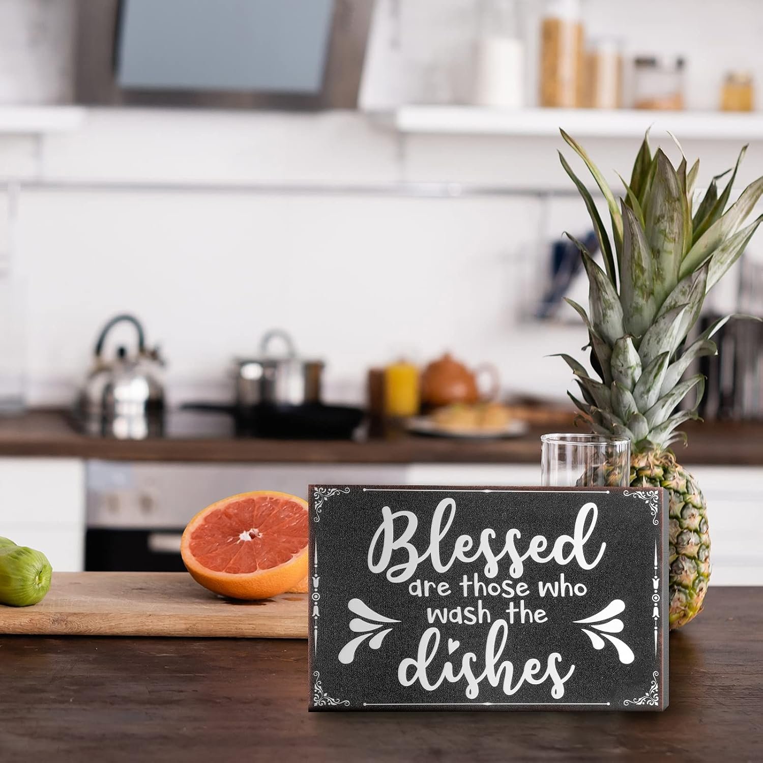Jetec Wooden Farmhouse Kitchen Decor Black And White Modern Kitchen Wall Decoration Rustic Decorative Funny Tray Art For Shelf Home Cabinets Coffee Counter