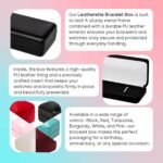 This bracelet box is just lovely! 🎁 The outside has this soft, smooth feel that’s so inviting, especially in that attractive cherry red shade. And the inside? It’s like a luxurious imitation leather piece that cradles your bracelet in style. 👌 The texture is top-notch, plus there are these handy little elastic bands on each side to secure your jewelry in place. The inner lining is this shiny, meshy material that’s not only well-presented but also has smooth edges neatly attached to the box’s sides. 🌟 Even the outer packaging is impressive – it’s made of thick cardboard with a glossy finish. Overall, this bracelet box is a winner in terms of quality and design! 🎉✨