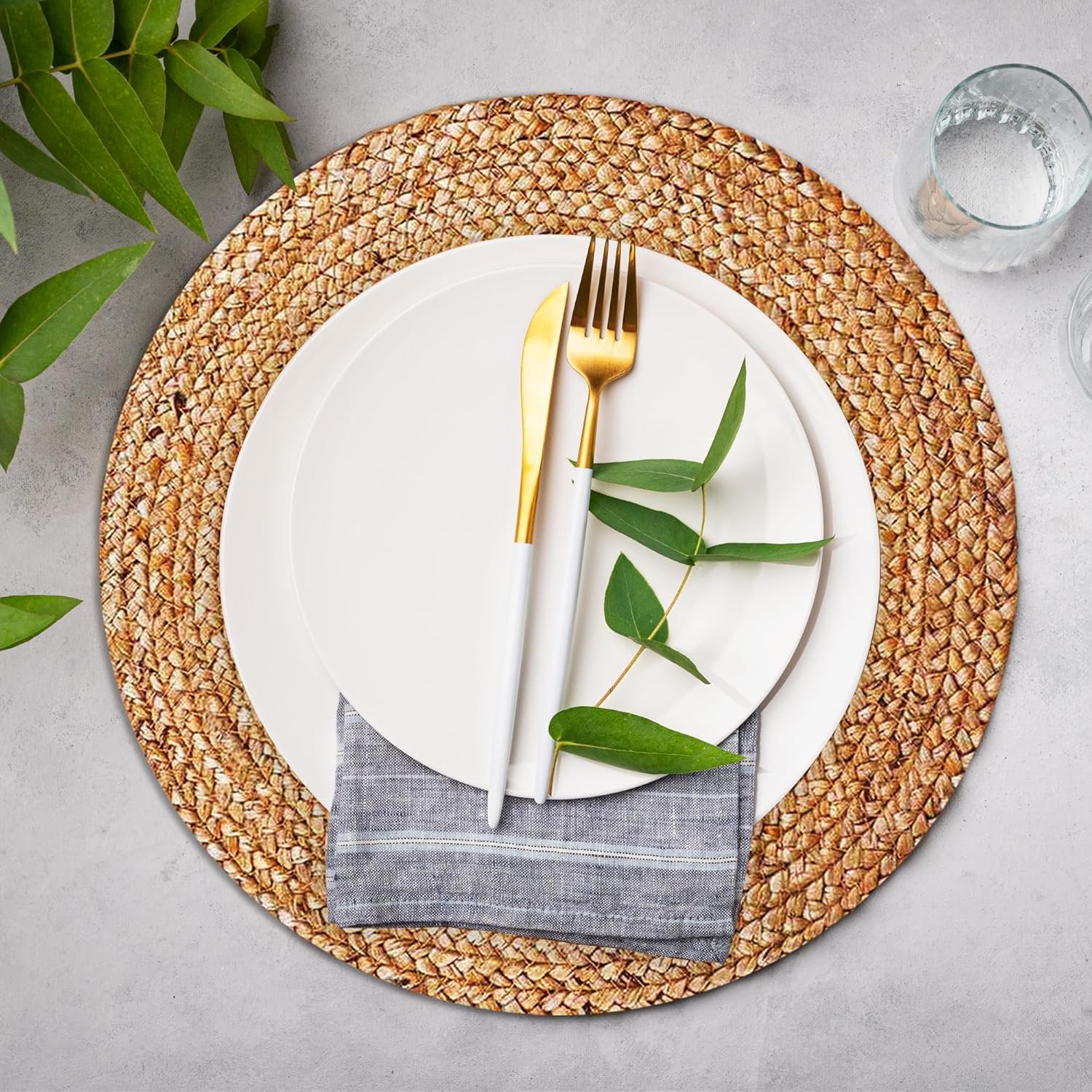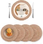 12 reviews for Jute Round Woven Placemats Set of 4, Natural 13 Inch Boho Farmhouse Rustic Hand Woven Place mat for Dining Table Decor, Wicker Chargers Heat Resistant Easy to Clean and Non-Slip Placemat