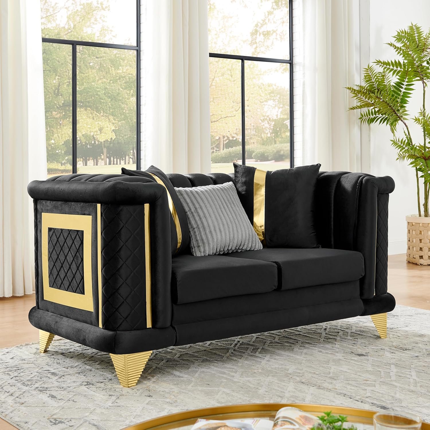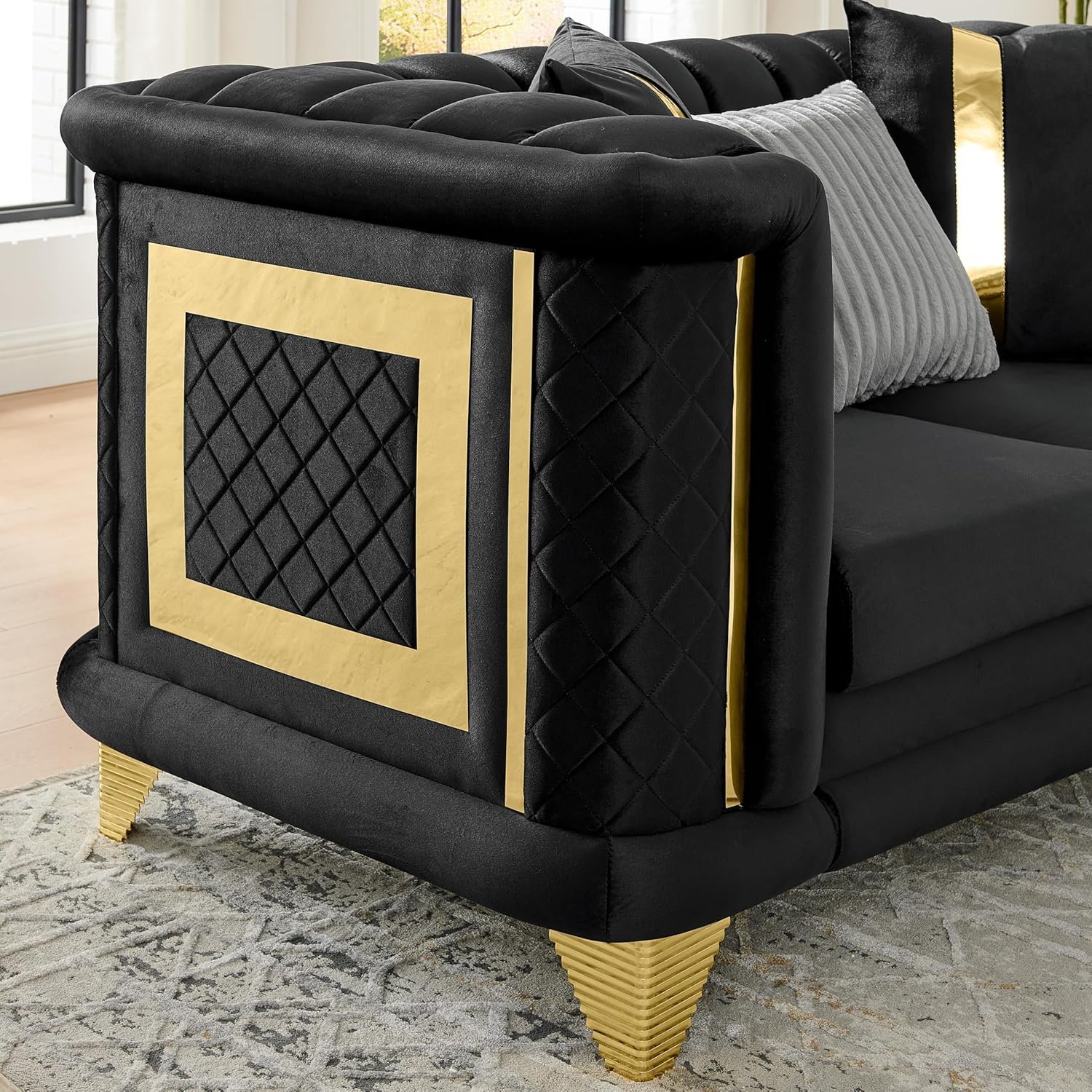 1 review for KEIKI 69″ Luxury Oversized Velvet Chesterfield Sofa with 3 Pillow, Gold Stainless Decoration and Embroidered Texture, 2-Seater Couch with Tufted Back, Rolled Arm, Easy Assembly, for Living Room, Black