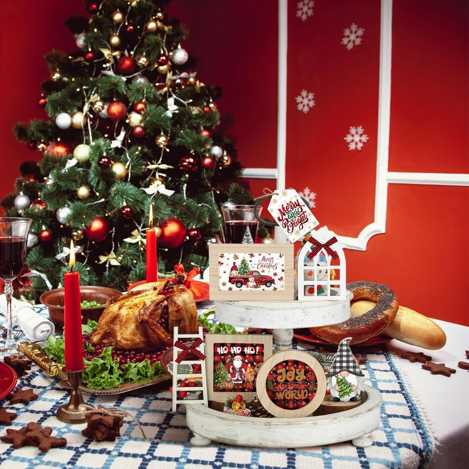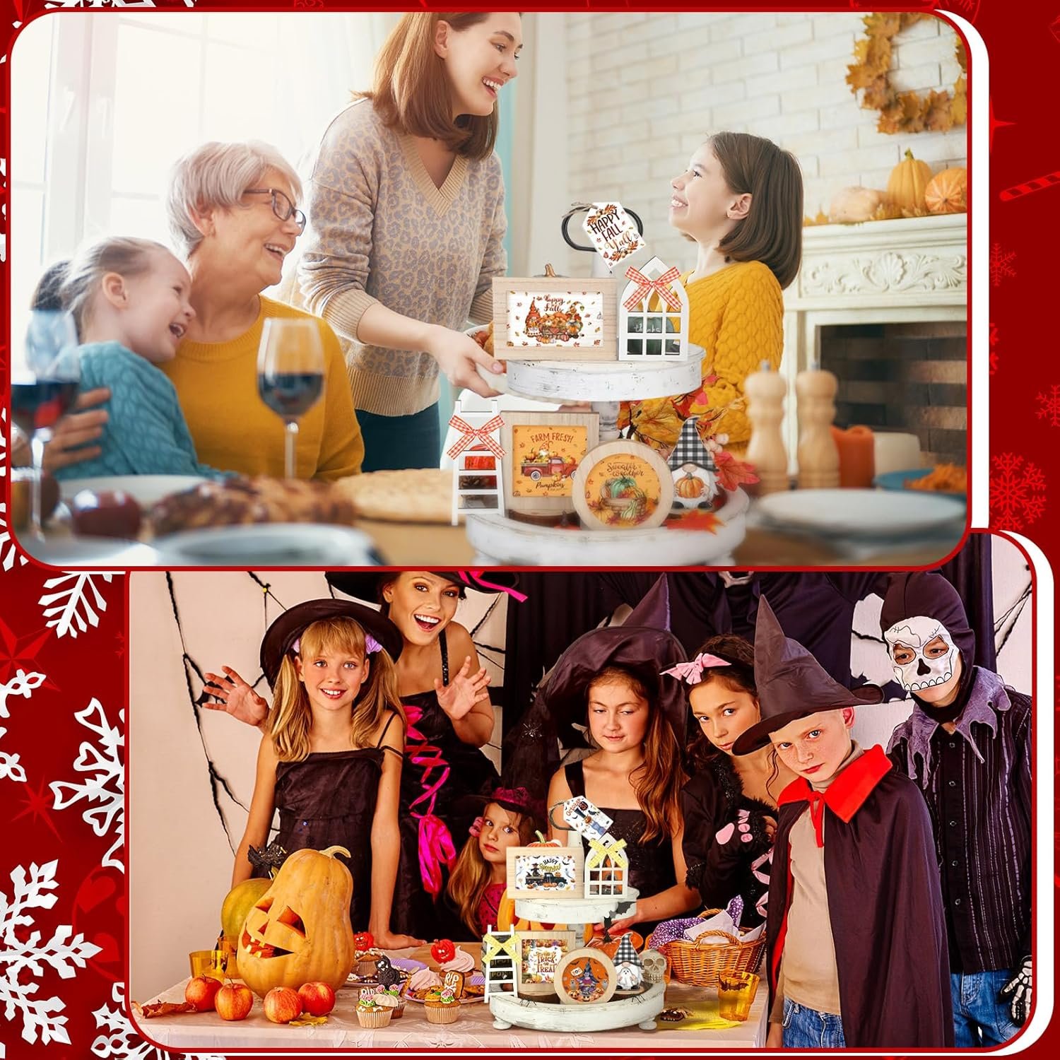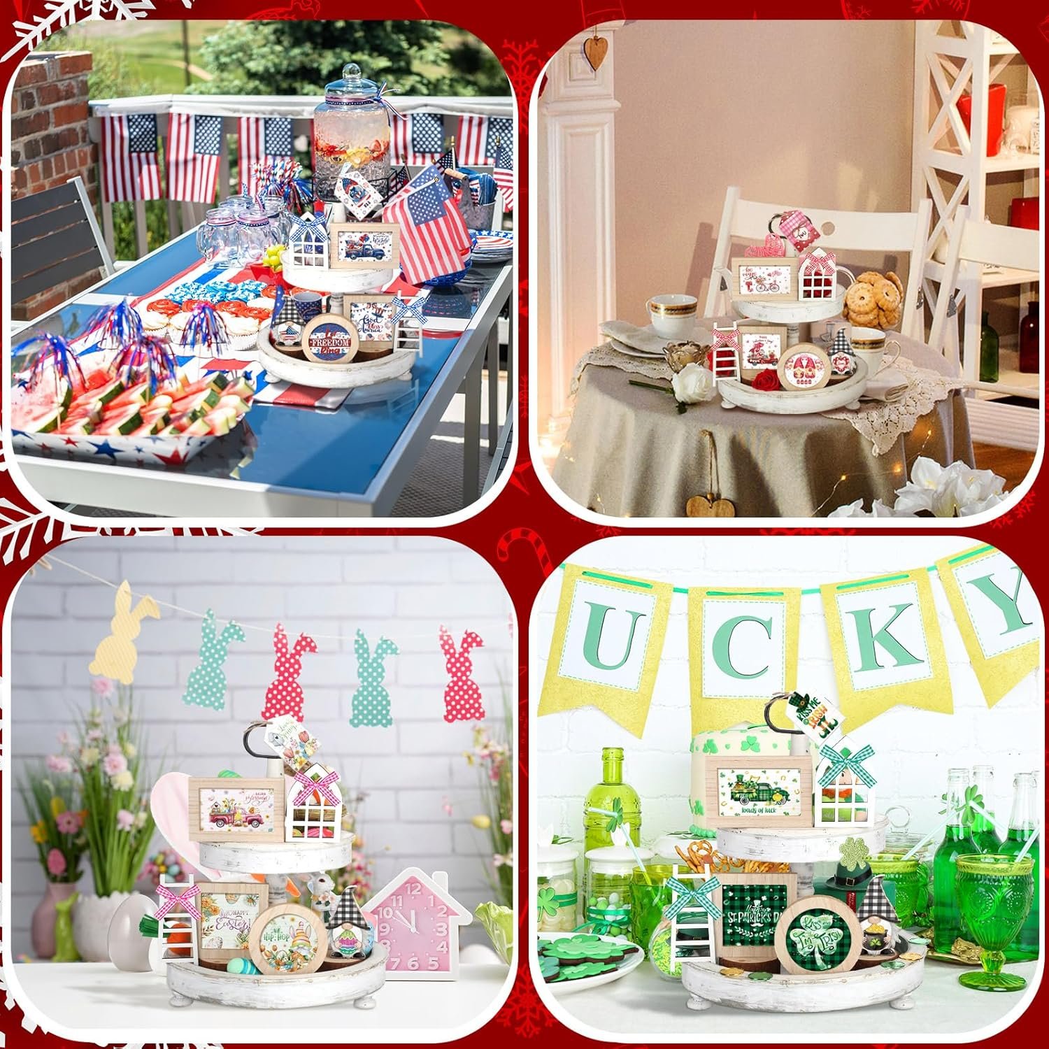 Purchased this for my daughter in law for their first home. Having a seasonal, holiday tiered tray makes it a go to option for decorating in a small space!