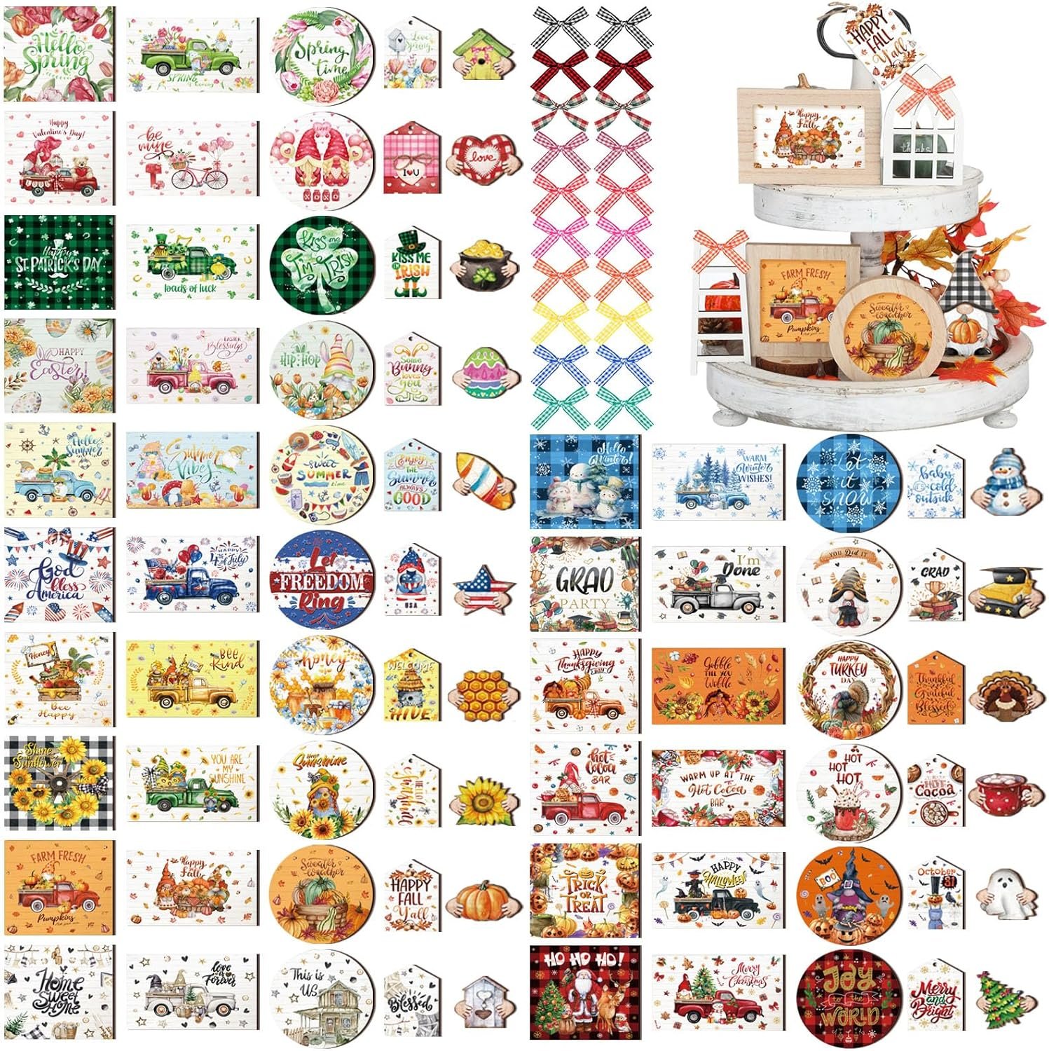 8 reviews for Kigley 101 Pcs Fall Tiered Tray Decor Set Thanksgiving Day Interchangeable Seasonal Decor Farmhouse Holiday Tiered Tray Decorations Interchangeable Tabletop Decoration for Seasonal Home