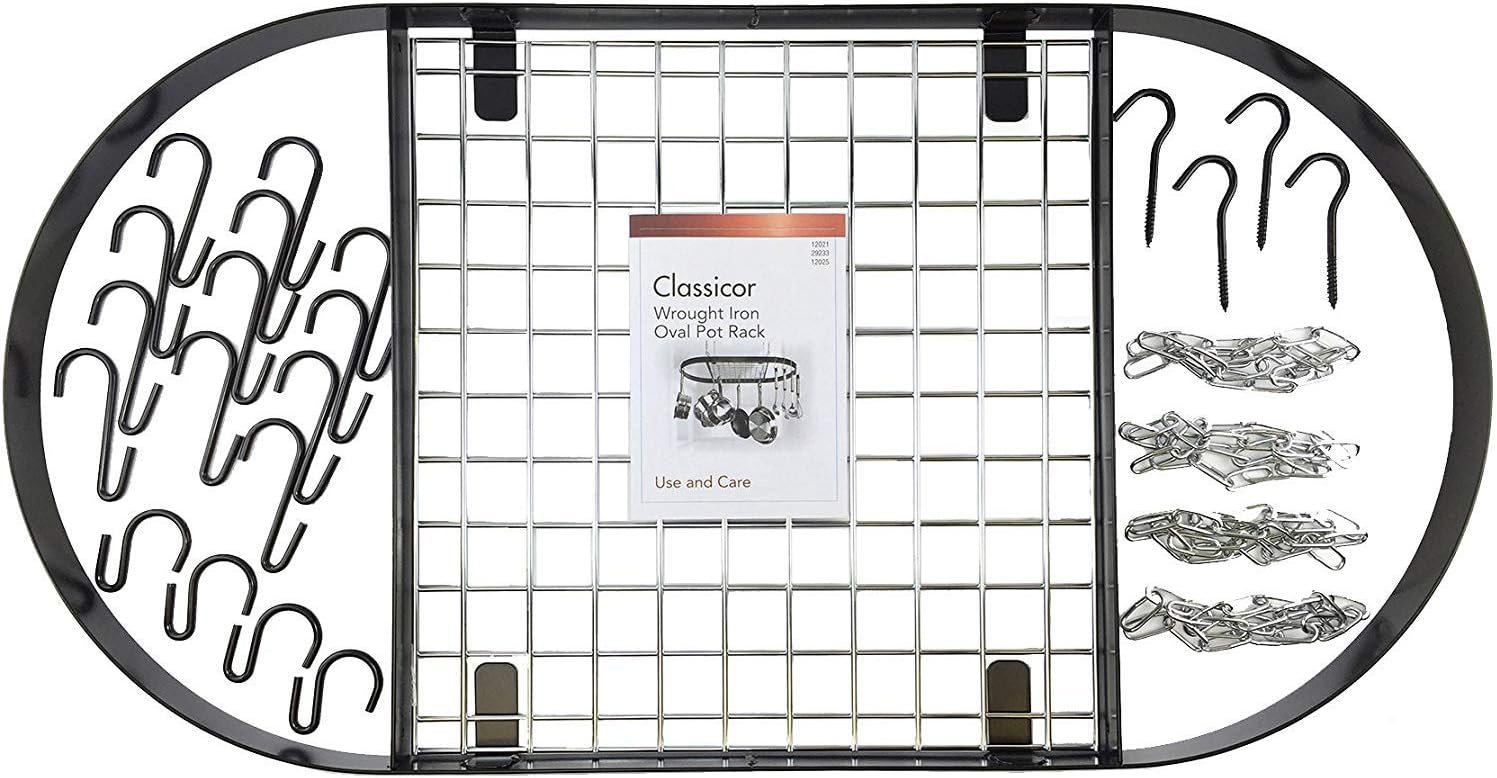 After looking for a larger hanging rack for my new cookware, I found this item on Amazon. I was a little nervous, given the price difference between this and other hanging racks. But the reviews were positive so I took the chance. I have decided to add my comments to the list of positive reviews.I would ideally give this item a 4.5 rating. I think a hanging rack is ultimately to showcase the cookware and not itself. In that respect, this is a great rack, clean and unobtrusive. The hooks are very nice, pinched on the rack end to help keep them from lifting. The hanging hardware and chain was also unobtrusive and ready to install, at what seemed a perfect height for my kitchen. I did not use the supplied ceiling hooks because I needed toggle hooks to go into my plaster ceiling.My only (minor) negative comment is that the black metal oval bar piece is less heavy than my previous, circular ceiling rack. It just doesn’t have that heavy, wrought bar quality. The flat metal is neither as thick or tall as other pot racks I have had and seen. However, it is more than sufficient and durable for all the pots I have on it. The triple ply looks great hanging from it. I highly recommend this rack for anyone who is trying to understand why most pot racks cost so dang much. This item has a great price and will make your cookware look great!
