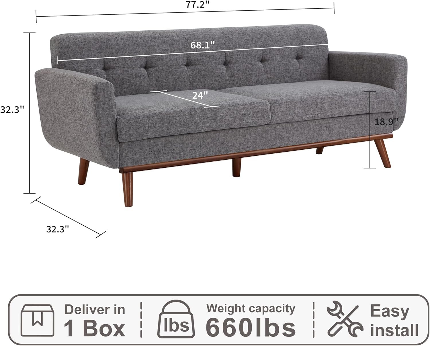 9 reviews for Kingfun 77.2″ W Loveseat Sofa, Mid Century Modern Decor Love Seat Couches for Living Room, Button Tufted Upholstered Furniture, Solid & Easy to Install Small Couch for Bedroom Office Apartment, Gray