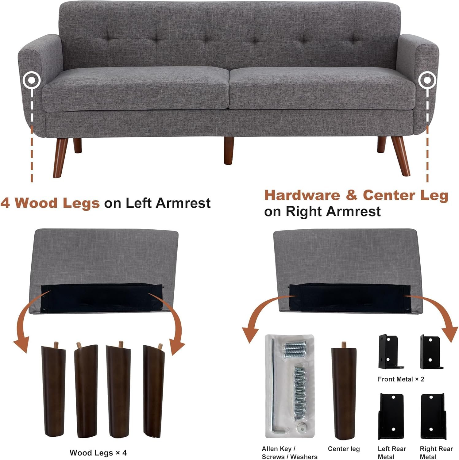 Do NOT buy this couch!!!!!!!!!! It has a manufacturing defect where the holes drilled in the metal do NOT line up with the other holes at Step 1. You cannot assemble it! And then you have to box it up to return it yourself. It is not an Amazon product. Other customers have had the same issue. Stay away!!!!!!