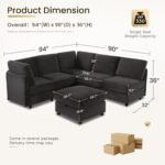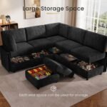 8 reviews for KKL Modular Sectional Sofa V-Shaped 6 Seater Couch with Storage Ottoman, Convertible L/J-Shaped Couch and Sofa Bed Plush Wide-Wale Corduroy for Living Room, Apartment, Modern Design, Black