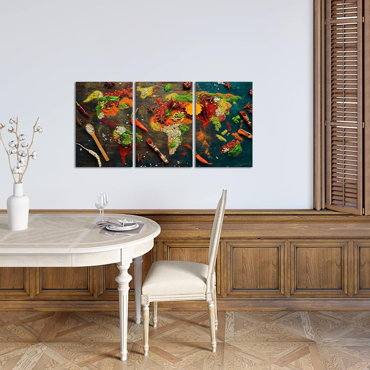 3 reviews for KREATIVE ARTS 3 Panel Wall Pictures Map of World Made from Different Spices on Wooden Background Poster Canvas Art Wall Decor Frame Poster Dining Room Kitchen Decoration Painting 16x24inchx3pcs