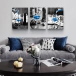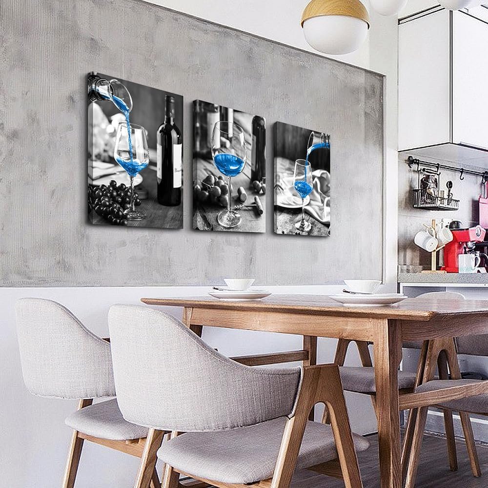 8 reviews for Lapremoly Canvas Wall Art – Modern Kitchen & Dining Room Decor – Black & White Wine Glasses, Blue Wine Wall Pictures – 3 Pieces