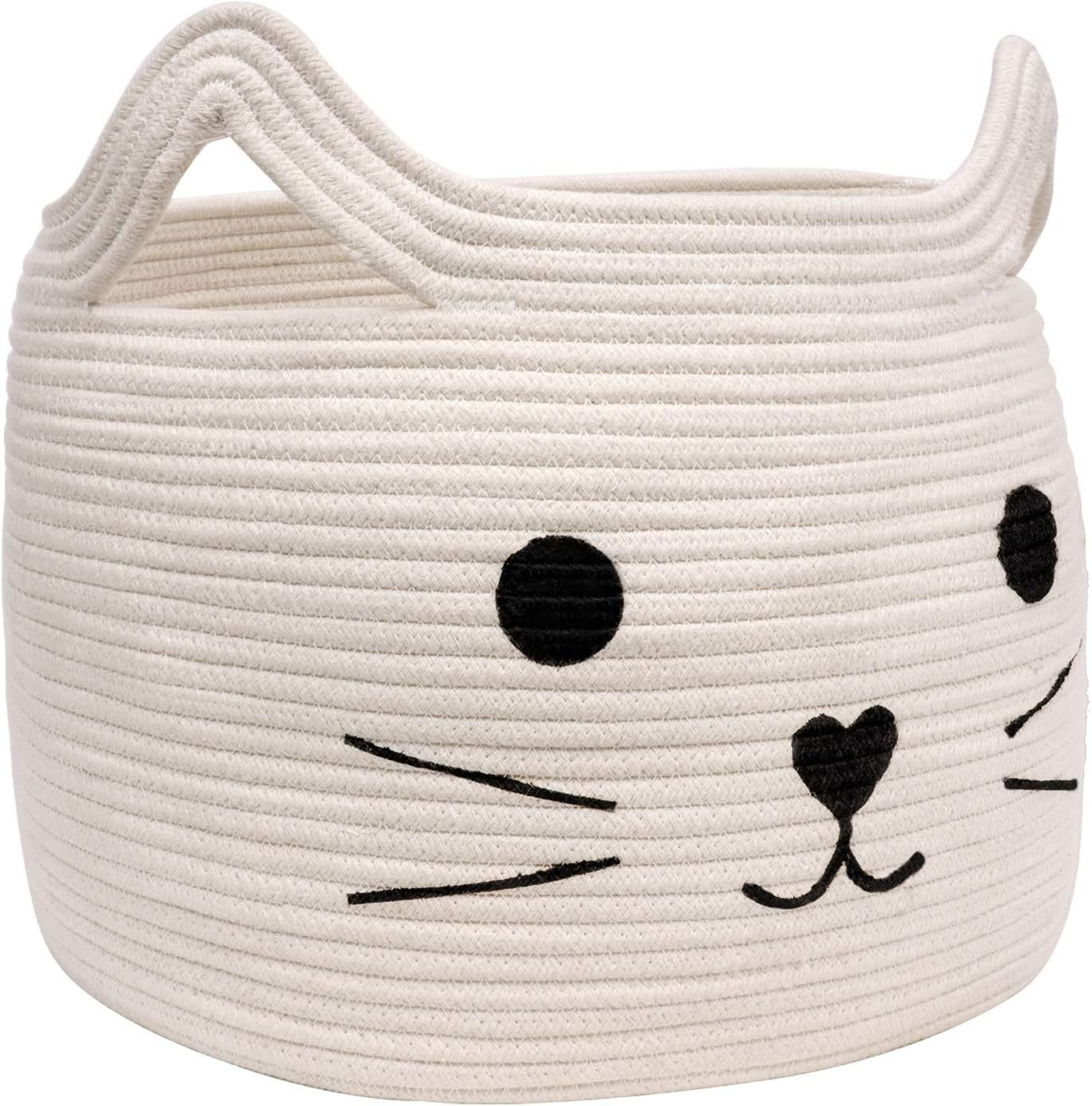 Large Woven Cotton Rope Storage Basket, Baby Laundry Basket Organizer for Towels, Blanket, Toys, Clothes, Gifts | Pet Gift Baskets for Cat, Dog – 15.7″ L×11.8″ H