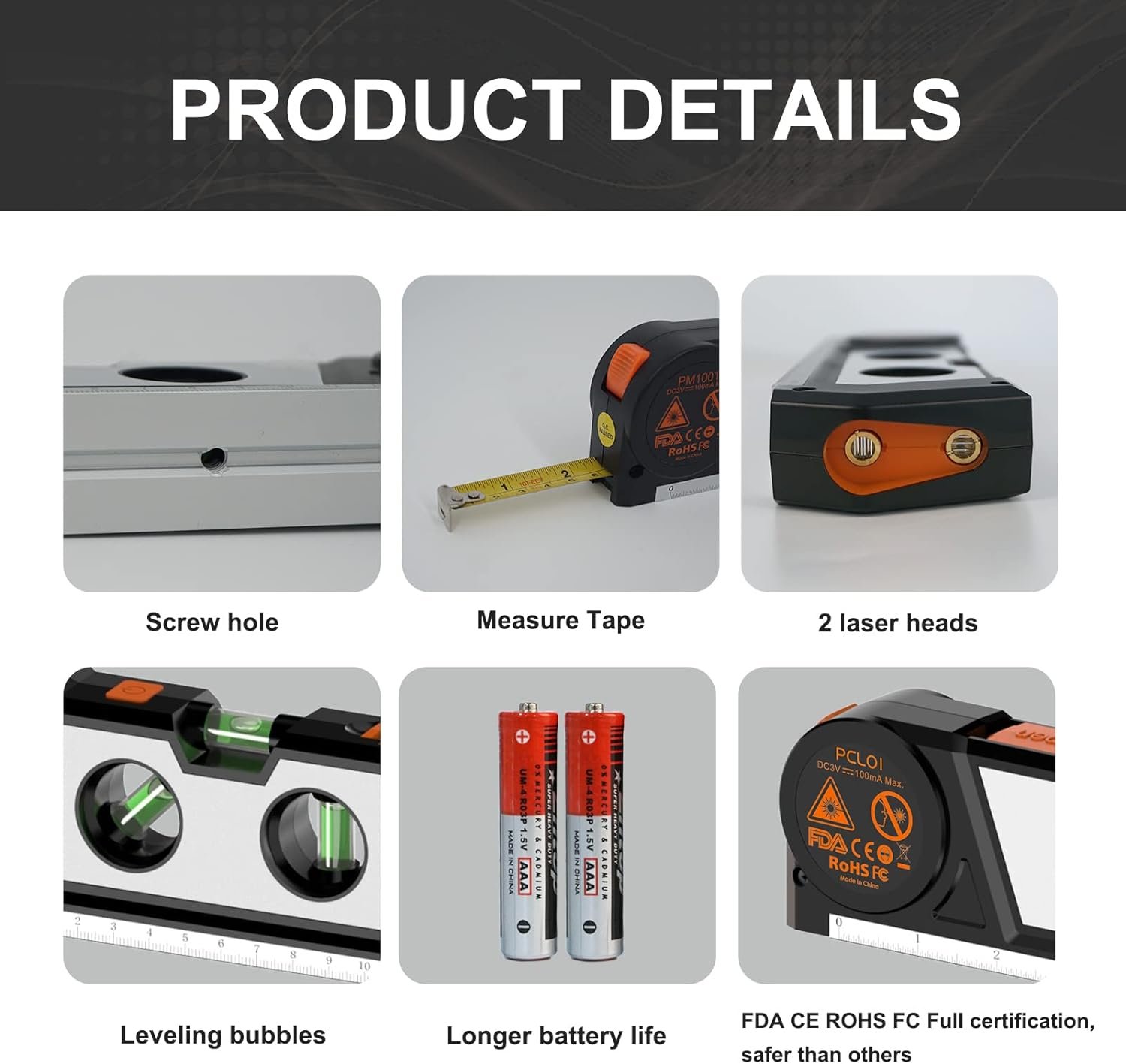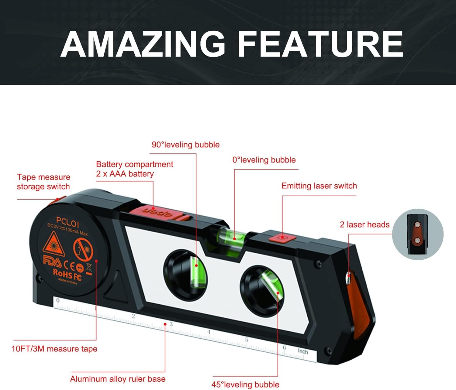 8 reviews for Laser Level Line Tool, 4 in 1 Multipurpose Standard Cross Line Laser Level, 10ft/3M Measure Tape Ruler, 3 Mode Laser Line,3 leveling bubble and Ruler Base for Picture Hanging, Home Renovation