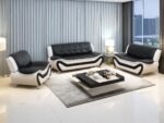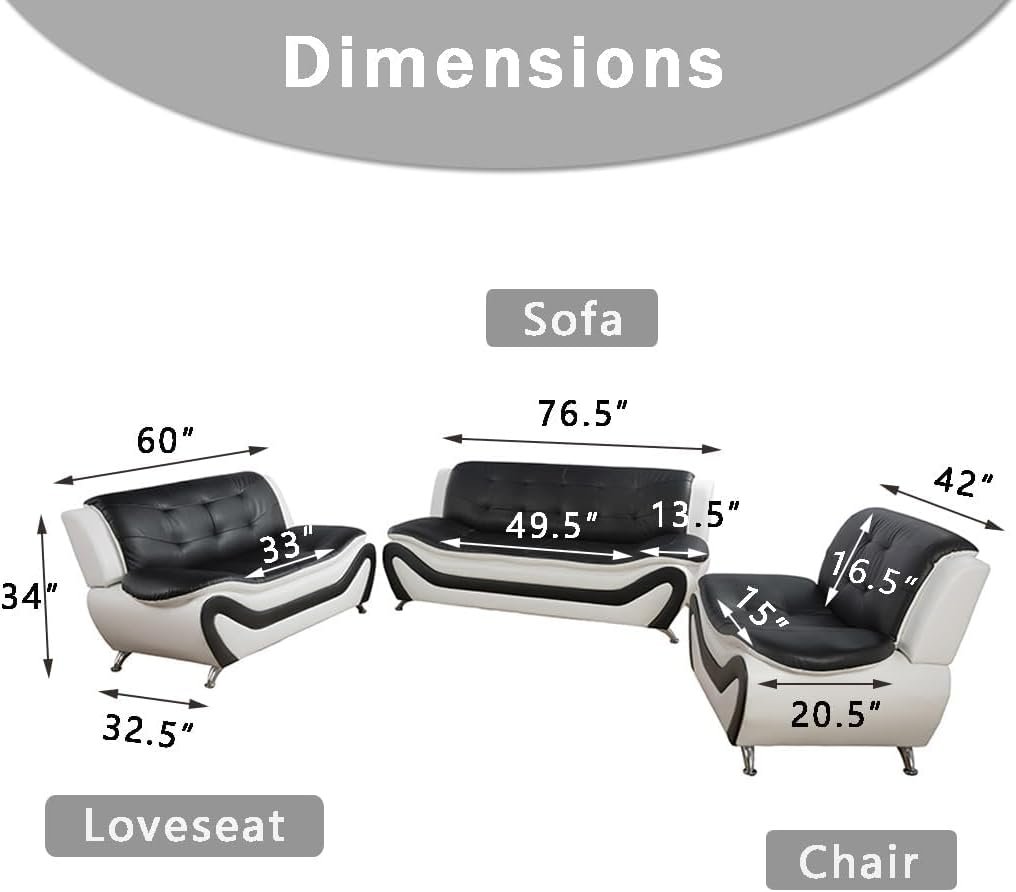 Leather Couches, Living Room Couch Set, Sofa for Bedroom, Apartment, Living Room Furniture Sets a-Leather (Black&White, Sofa+Loveseat+Chair)