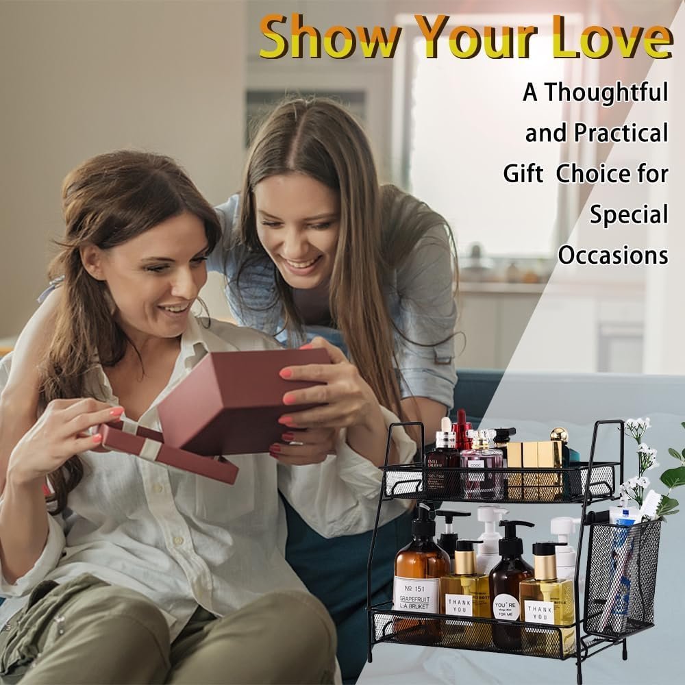 I bought the LEMIKKLE Countertop Organizer to help declutter my bathroom counter — but I loved it so much, I ended up ordering a second one for my kitchen!Assembly was quick and easy, and I really appreciated that all tools were included. The matte black finish is modern and sleek, and the unit feels solid and well-made — no wobbling or flimsy parts.In the bathroom, I use it to store skincare products, perfumes, and a few hair tools. The included basket is perfect for holding cotton pads, lip glosses, or small jars that would otherwise get lost in drawers.In the kitchen, it transformed my spice area. It holds several spice jars on top, while the basket underneath keeps packets, measuring spoons, and even a small oil bottle tidy and accessible.What I really like is how versatile and space-saving it is — it can be styled to suit almost any room. The raised shelf design also gives it a more elegant, minimal look compared to bulky organizers. It’s rare to find something this stylish and useful at such a great price.If you’re looking for a way to clean up your counters without sacrificing aesthetics, this is it! I’ll definitely be keeping an eye out for more LEMIKKLE products.