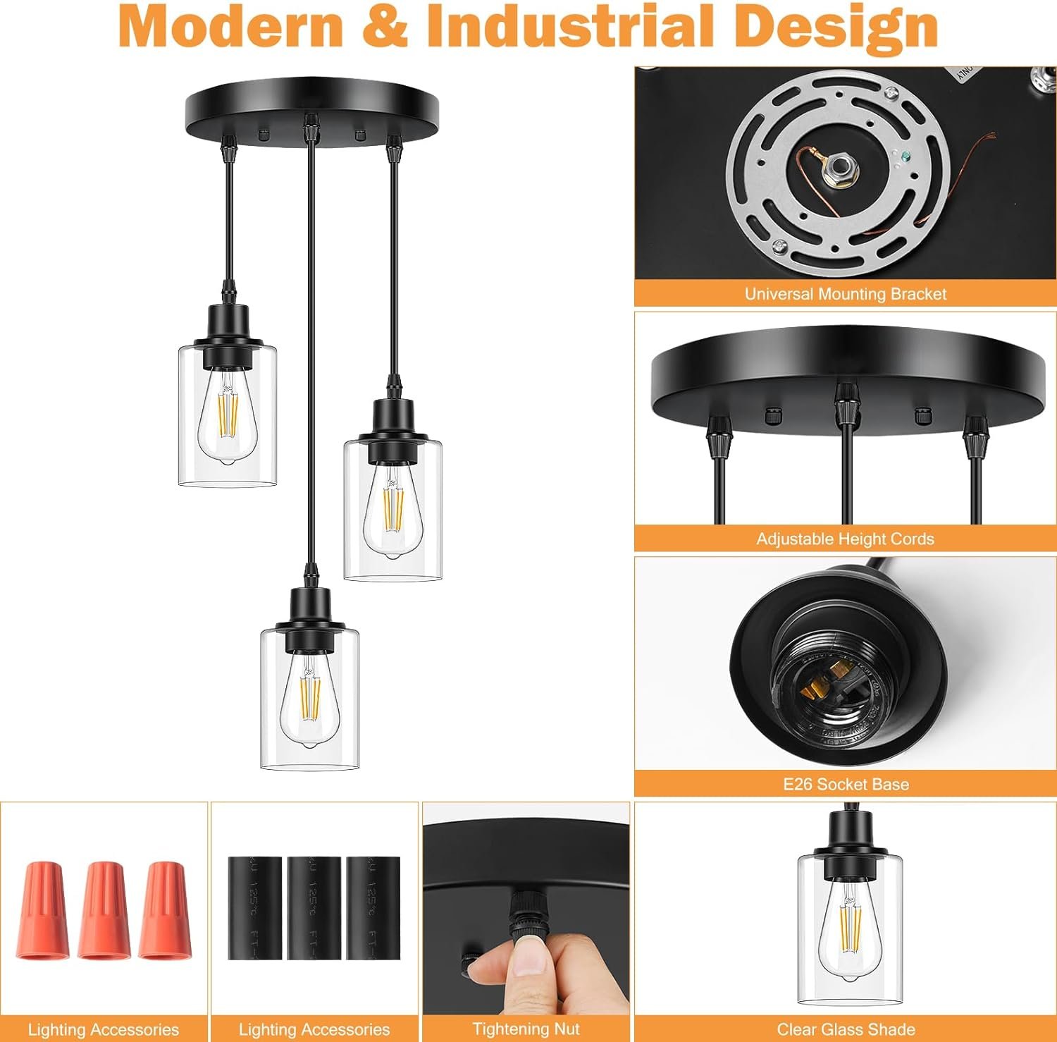 8 reviews for Licperron 3-Light Pendant Light Fixtures, Black Pendant Lights Kitchen Island, Adjustable Pendant Lighting with Clear Glass Shade, Modern Hanging Light Fixtures for Dining Room, Hallway, Living Room