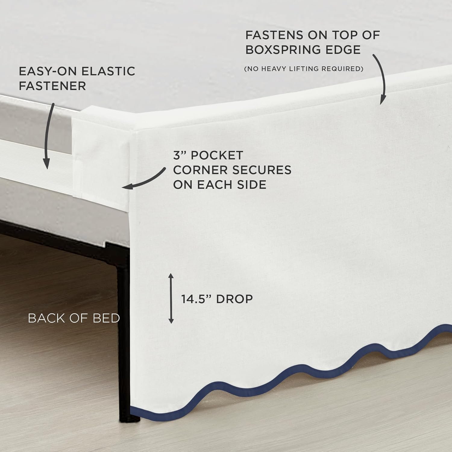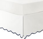 Lush Decor Coastal Chic Scallop Edge Linen Textured Bed Skirt Navy/White Single King – Soft Elegant Luxury Easy Fit Elastic Band Tailored Bedskirt