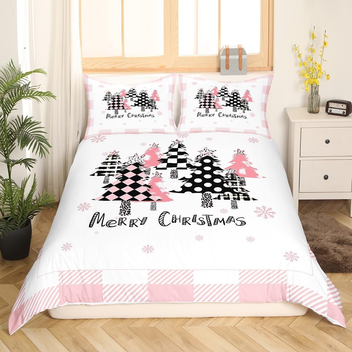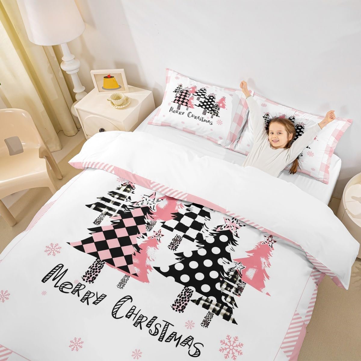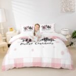 11 reviews for Manfei Christmas Kids Duvet Cover Set (No Comforter) Full, Pink Plaid Xmas Trees Print Bedding Set 3pcs for Girls Women Bedroom Decor, Western New Year Theme Comforter Cover with 2 Pillowcases