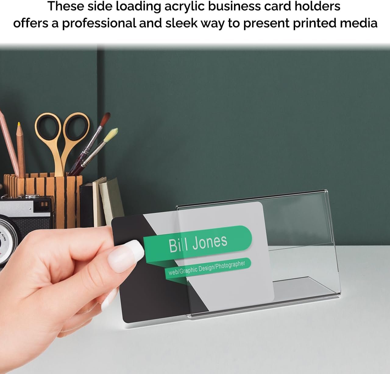 These are just what I was looking for. I use them for informational cards for my hand woven items in a local consignment shop. I can print out on business card stock and change them out as needed.The holders were delivered quickly and were well packaged to prevent damage.