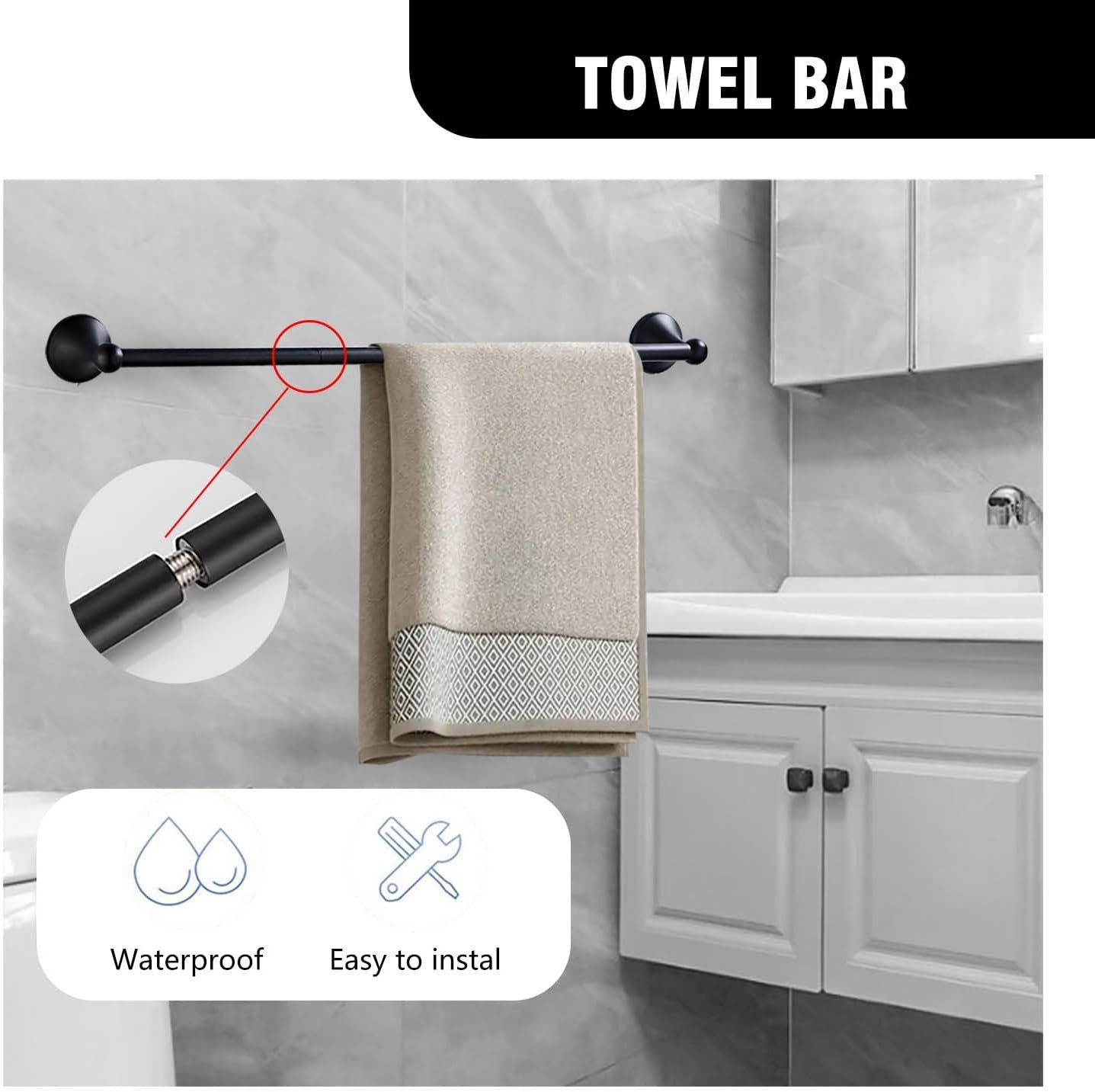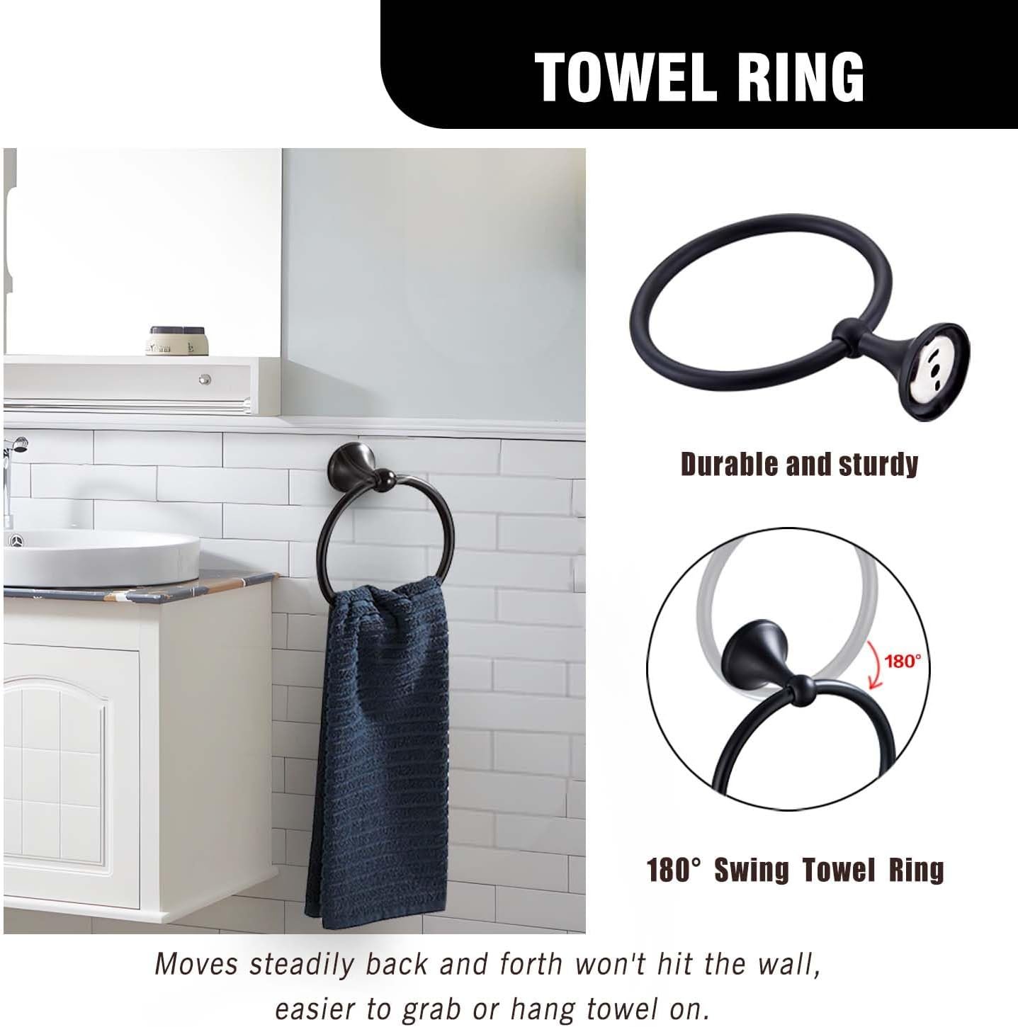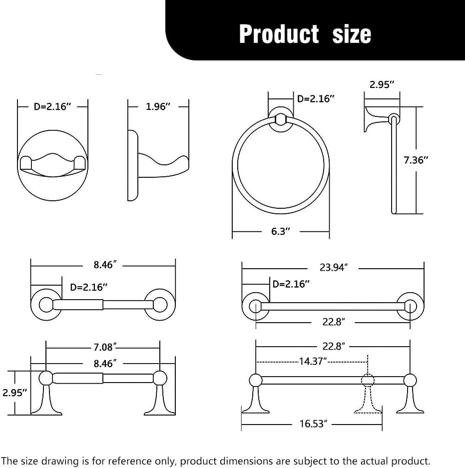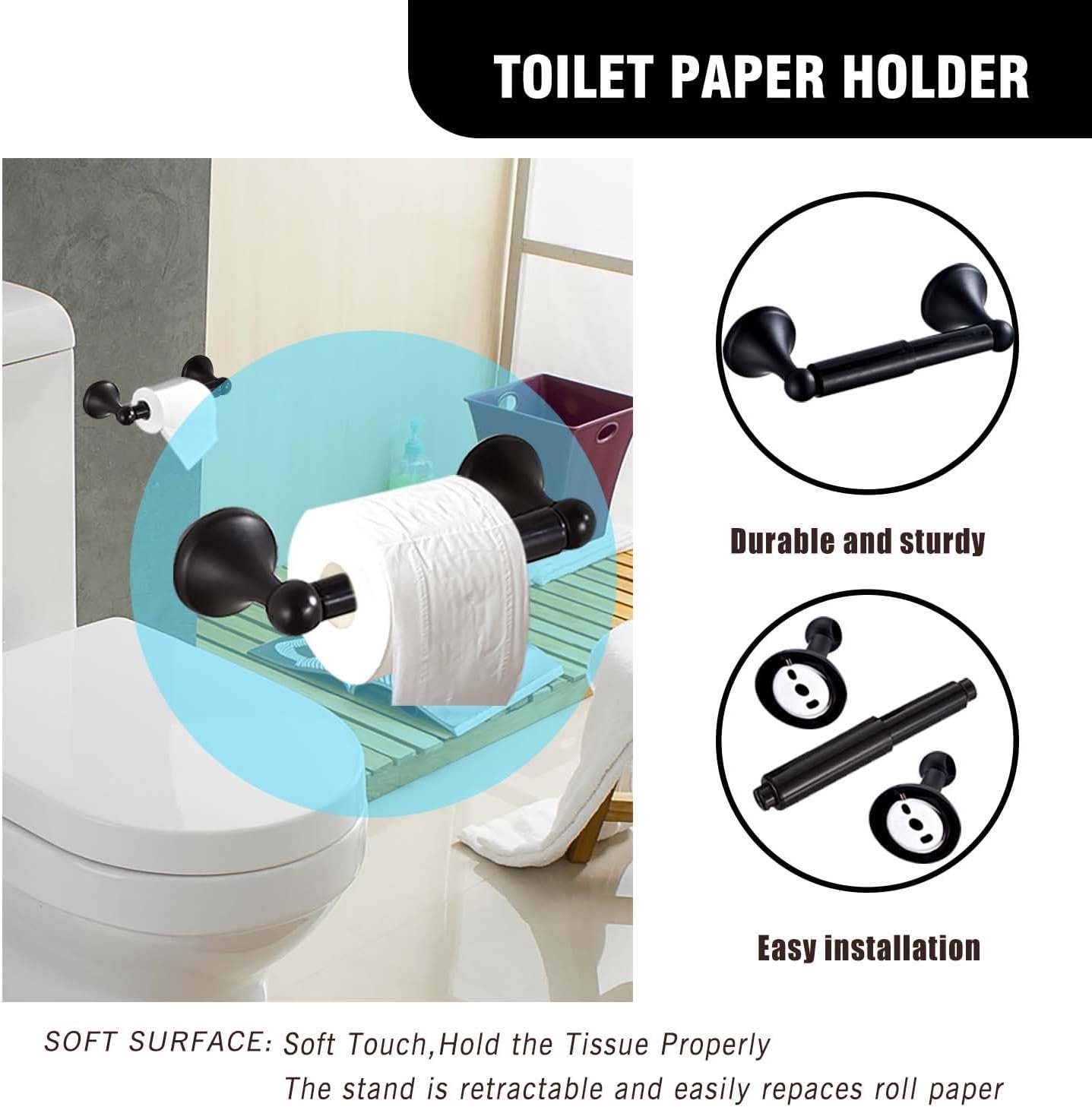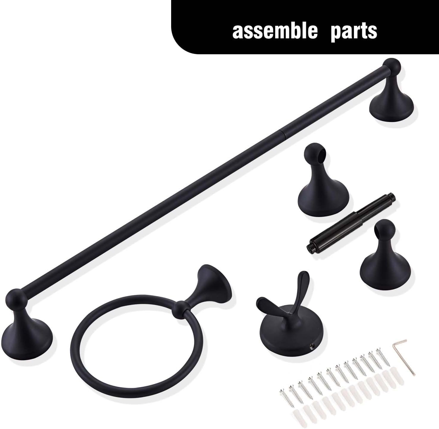 8 reviews for Matt Black Bathroom Accessory Set, Adjustable Towel Bar,Towel Ring,Toilet Paper Holder,Robe Hook 4-Piece Bathroom Hardware Set Wall Mounted (Matt Black)