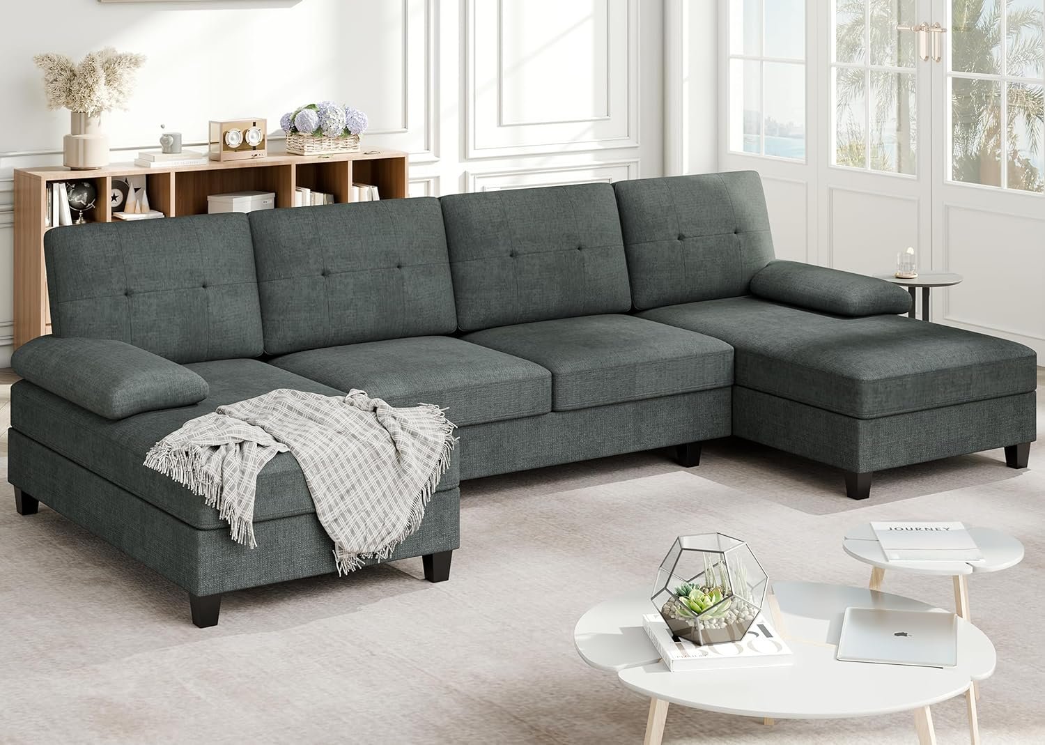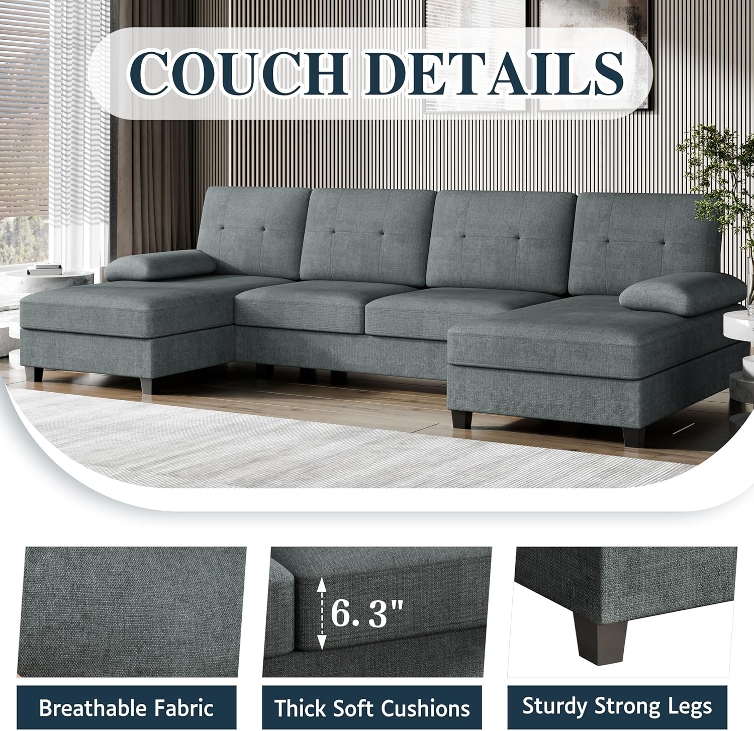 8 reviews for Meilocar Sectional Couches for Living Room, U Shaped Couch 4- Seat Sectional Sofa with Double Chaise, Comfortable Fabric Large Sofa for Apartment (Grey)