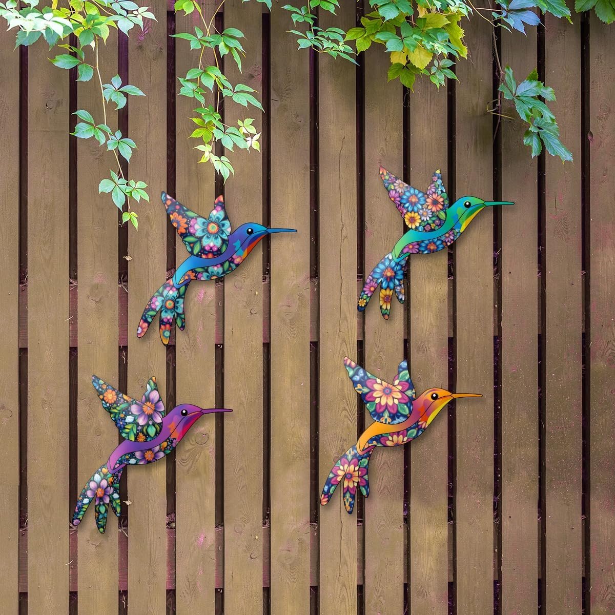 Metal Hummingbird Wall Decor,Outdoor Fence Birds Art Decoration,Hanging Decorations for Garden,Yard,Patio Balcony,Great Gifts for Family Friends(4 Pack)