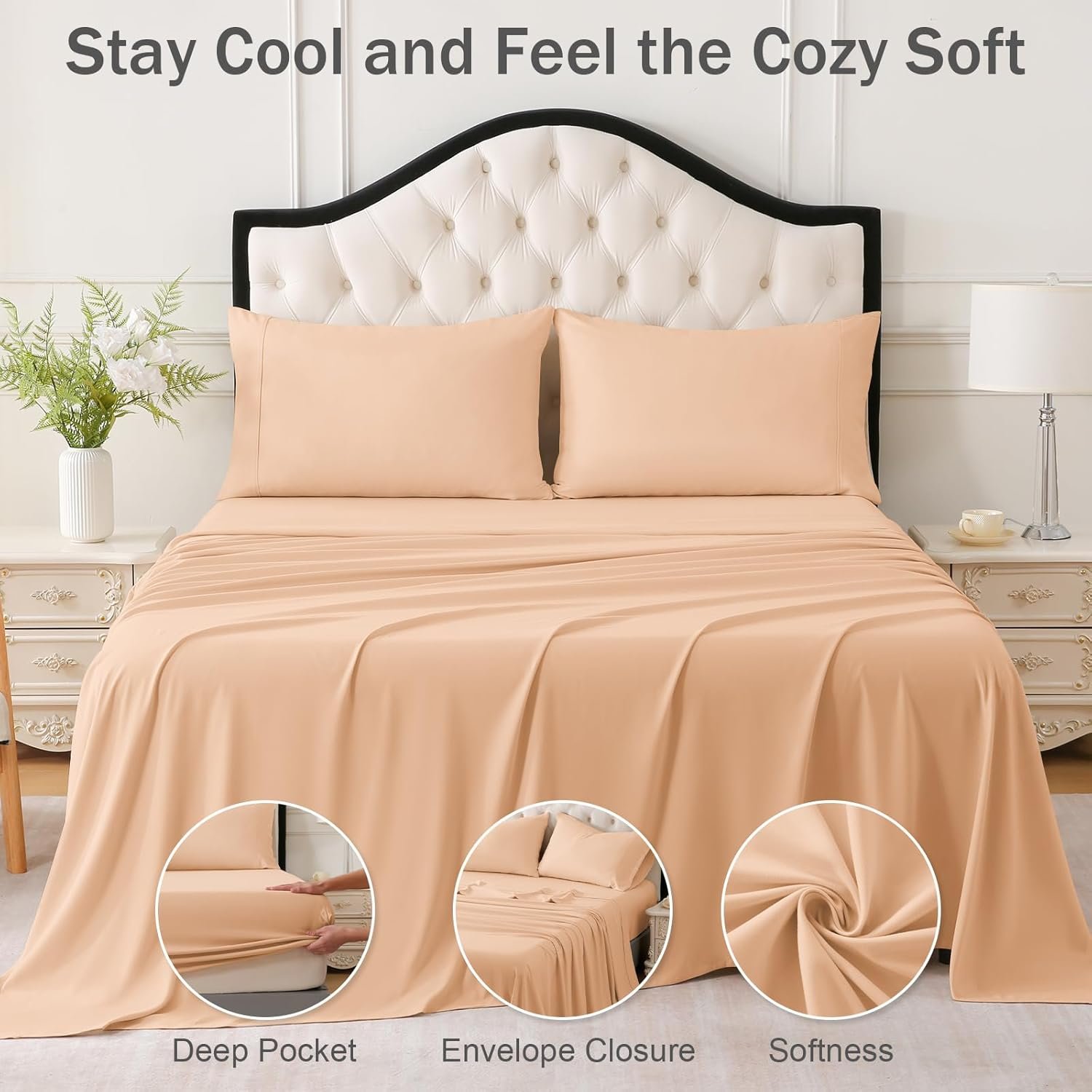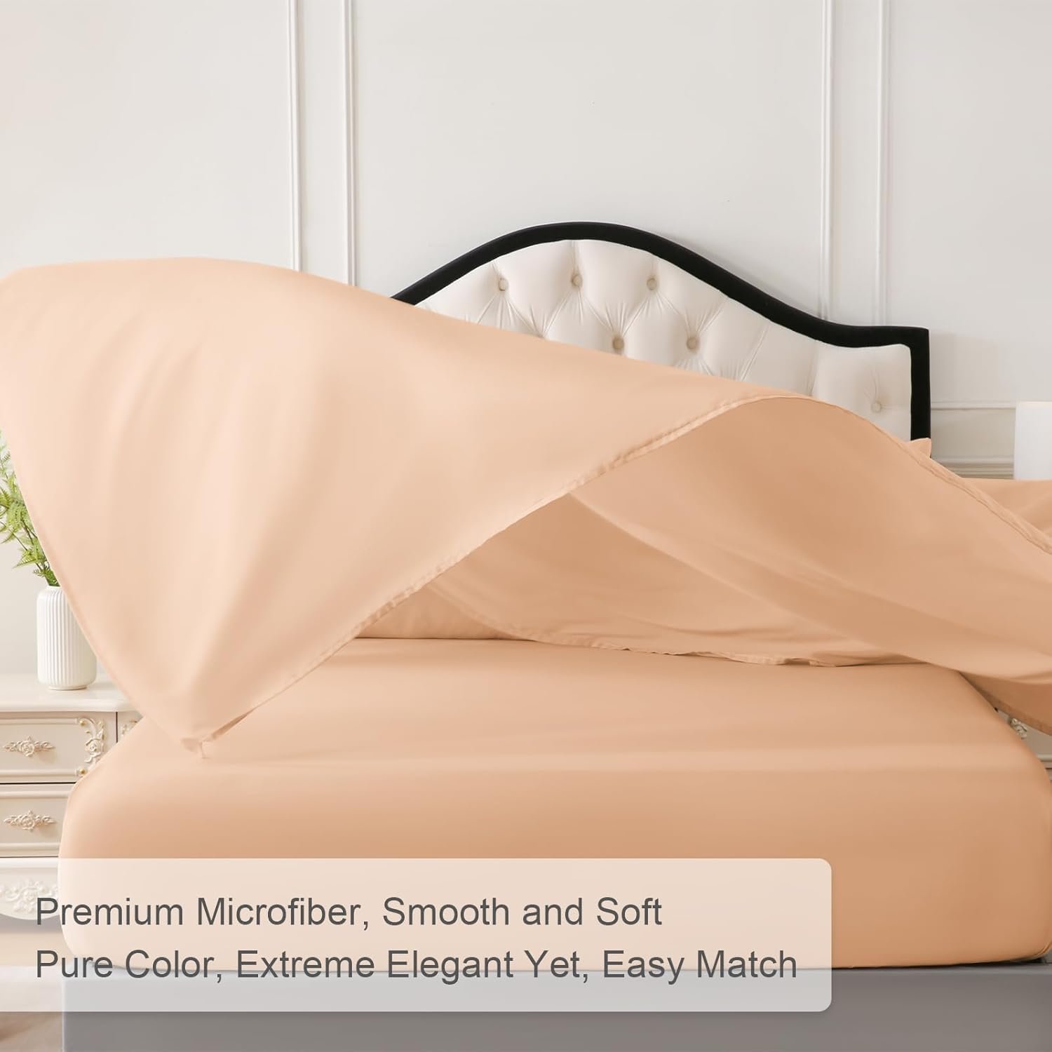 MICORAL Queen Bed Sheets Set, Soft Breathable Bedding Sheet Set, Sheets Set with 16″ Deep Pocket Design (4 Pieces, Queen, Pearl Pink)