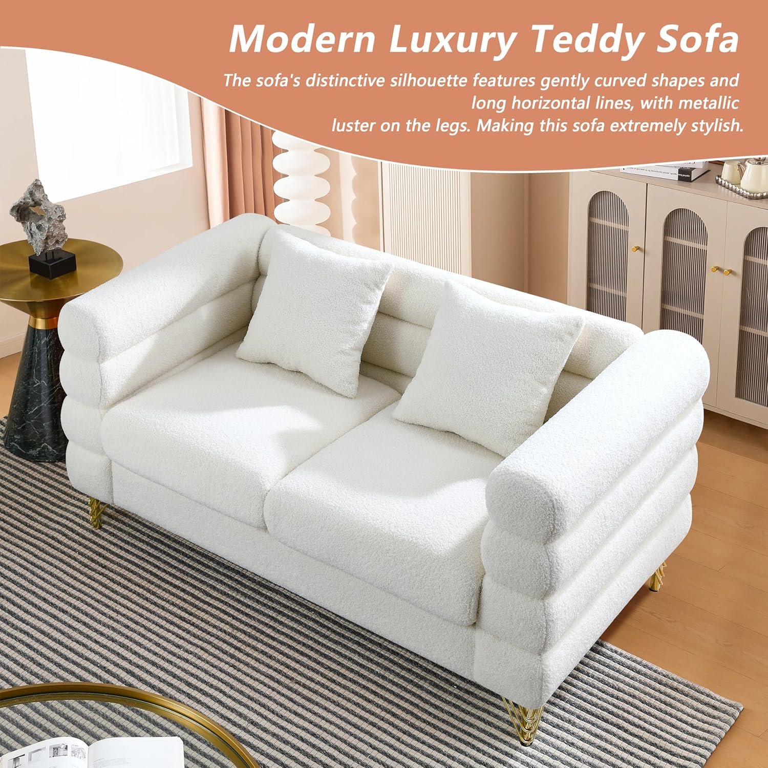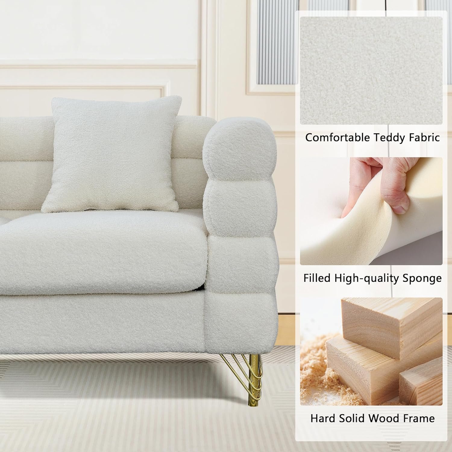 8 reviews for mikibama Luxury Teddy Sofa Set for Living Room, Modern Decor Furniture Sectional Sofa, 3 Seater Couch and Loveseat with 5 Pillows for Apartment, Office, Hall (White)